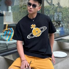 西太后新字母款土星星球印花圆领短袖T恤 男女同款 黑色