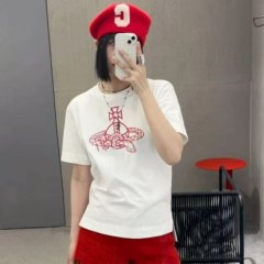 西太后新字母款土星星球印花圆领短袖T恤 男女同款 红色
