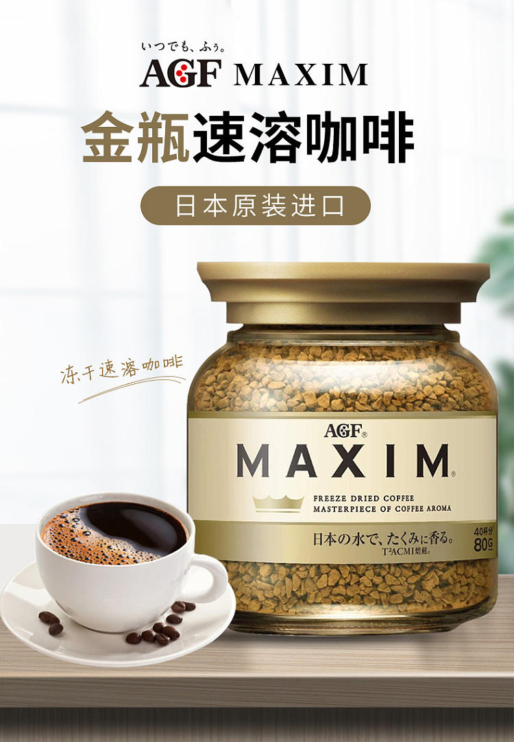 日本进口agfblendy咖啡粉美式马克西姆金罐无蔗糖速溶冻干黑咖啡(蓝罐)
