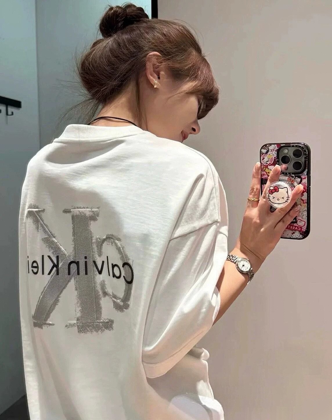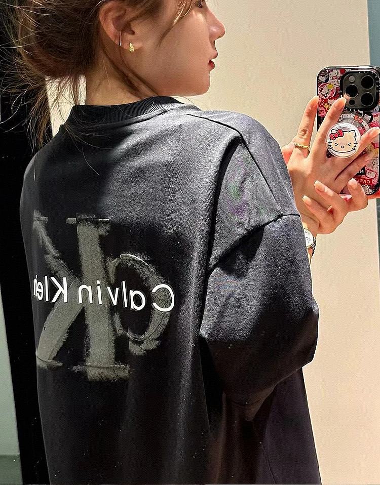 浮雕涂鸦 美国CK短袖T恤 男女同款 黑色