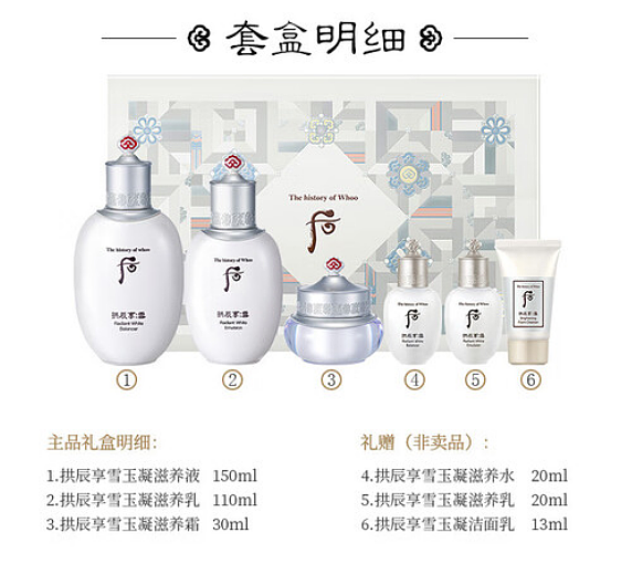 WHOO/后拱辰享雪玉凝美白礼盒6件套
