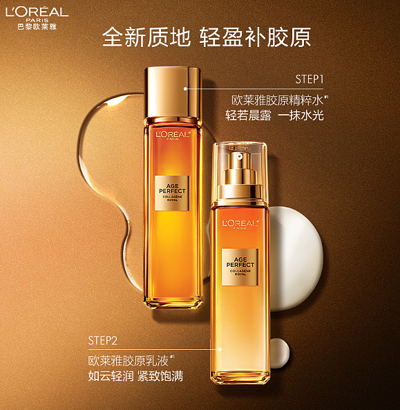 欧莱雅金致臻颜花蜜胶原精粹水65ml+乳液50ml