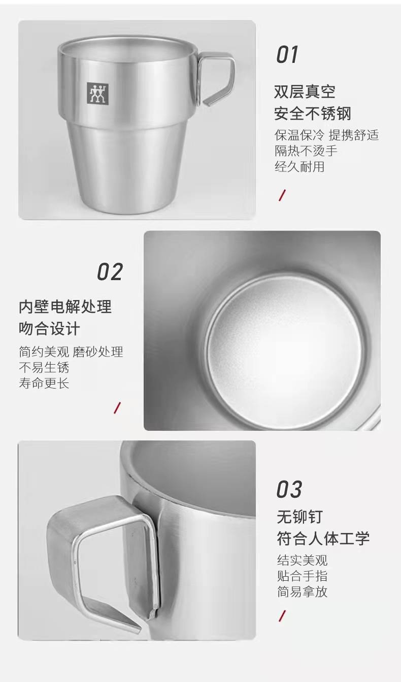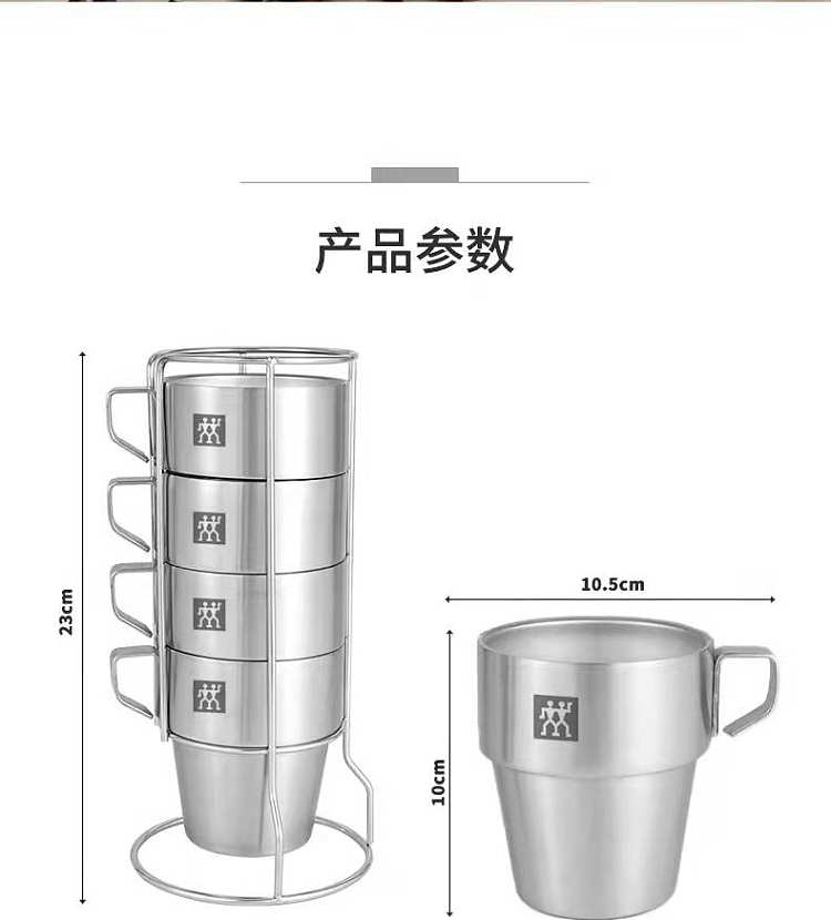 德国双立人不锈钢咖啡杯4件套 送杯架