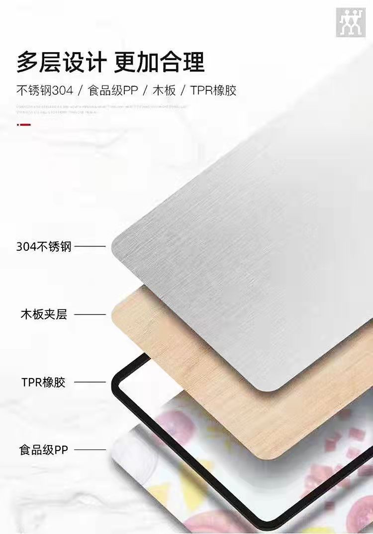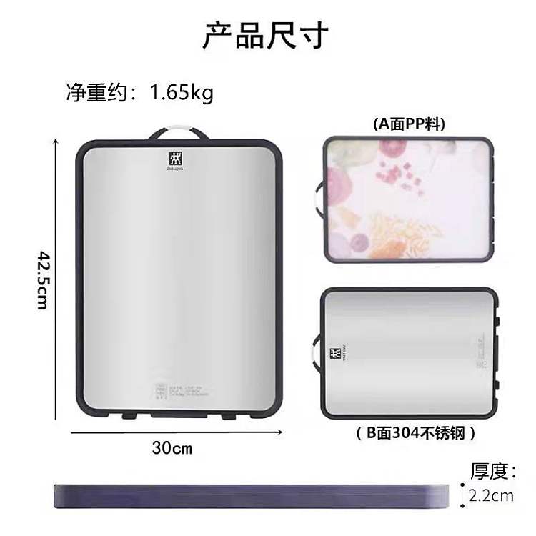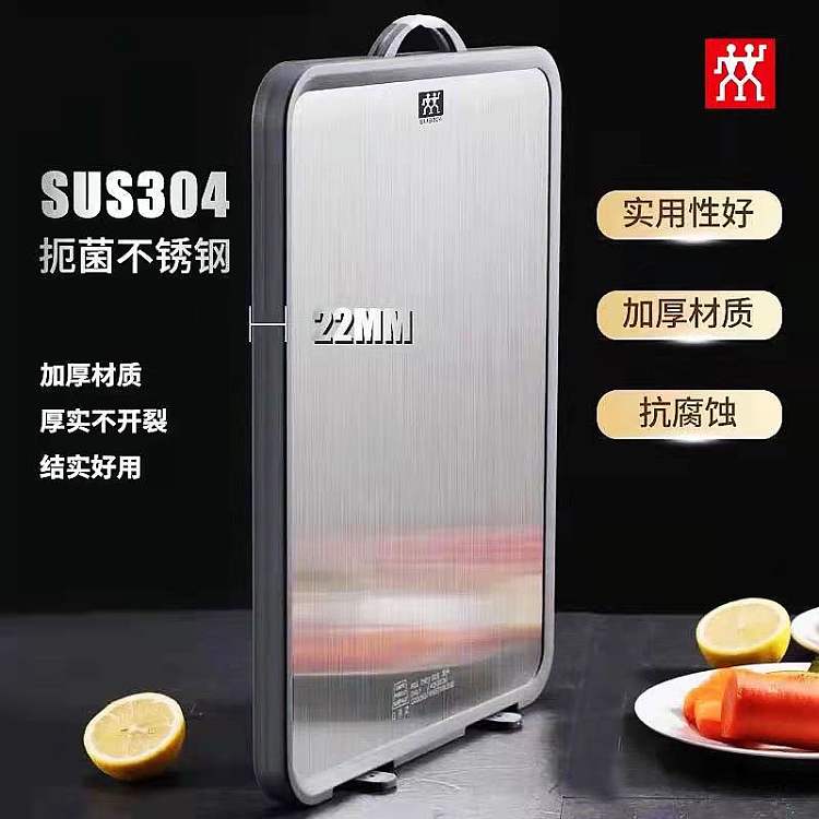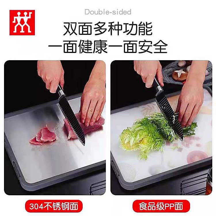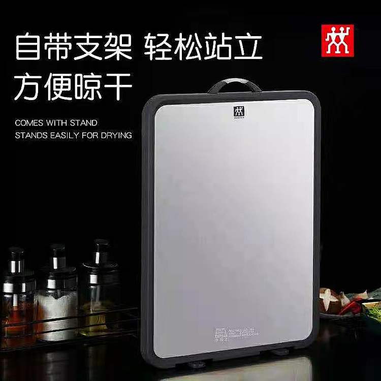德国双立人抗菌防霉双面304不锈钢可站立按板 砧板