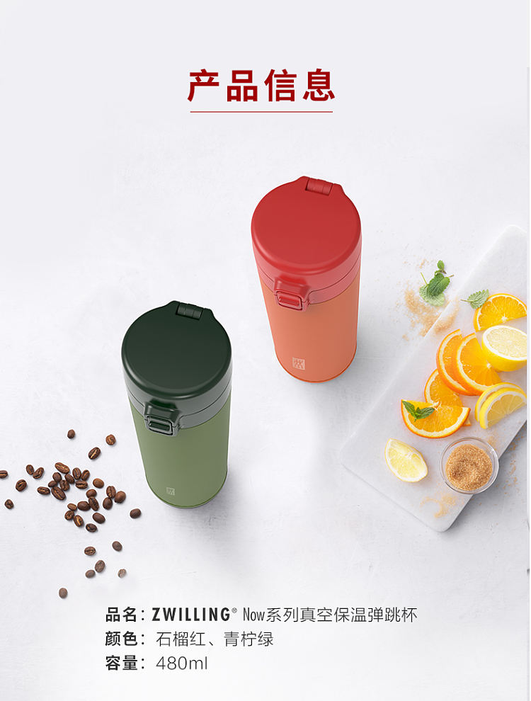 任嘉伦同款 德国双立人石榴红316不锈钢锁冷保温杯 480ML