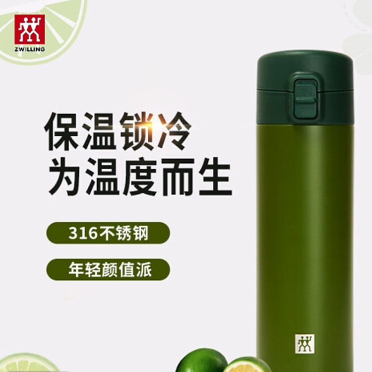 任嘉伦同款 德国双立人青柠绿316不锈钢锁冷保温杯 480ML