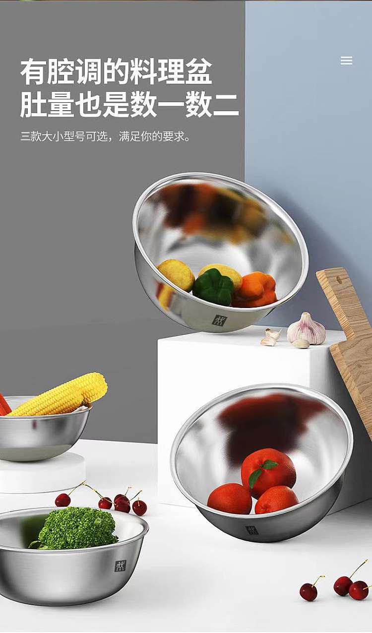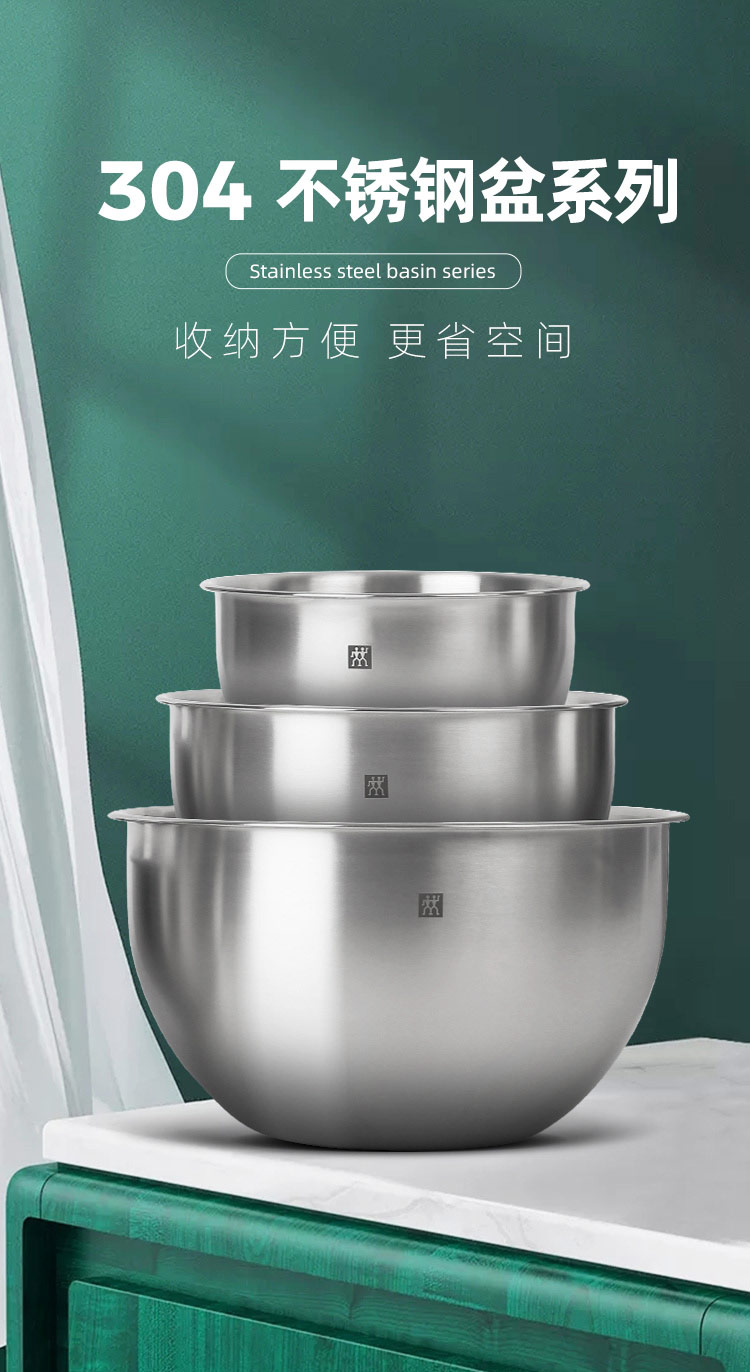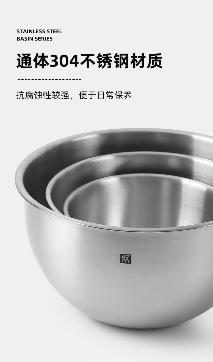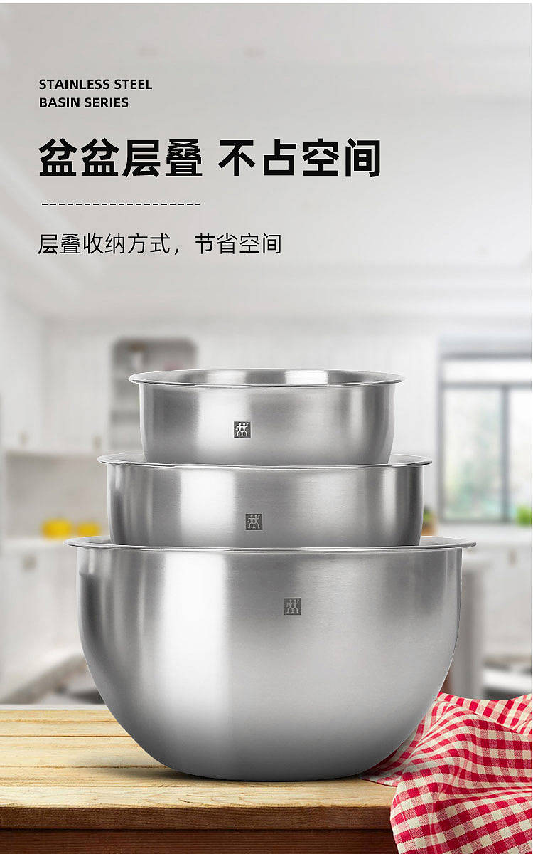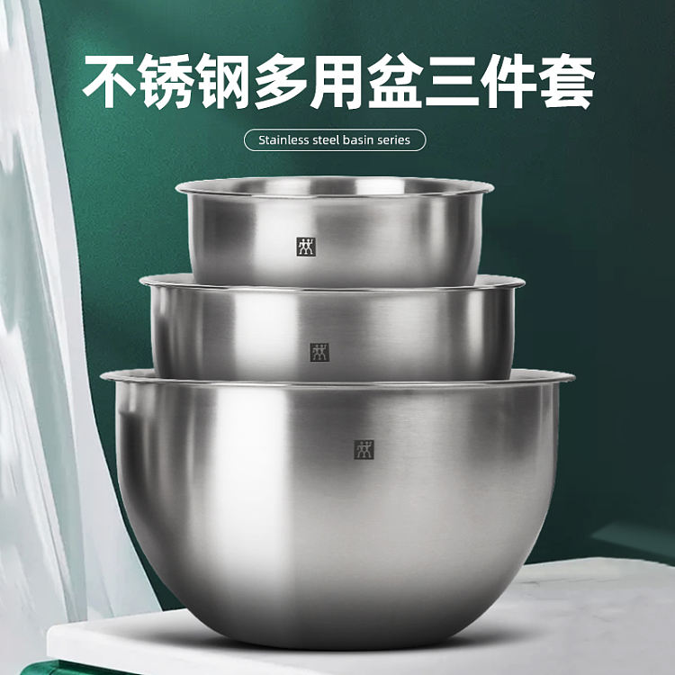 德国双立人不锈钢圆形沙拉盆汤盆洗菜盆和面盆打蛋盆3件套