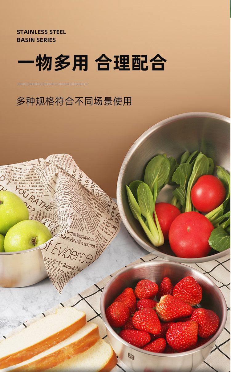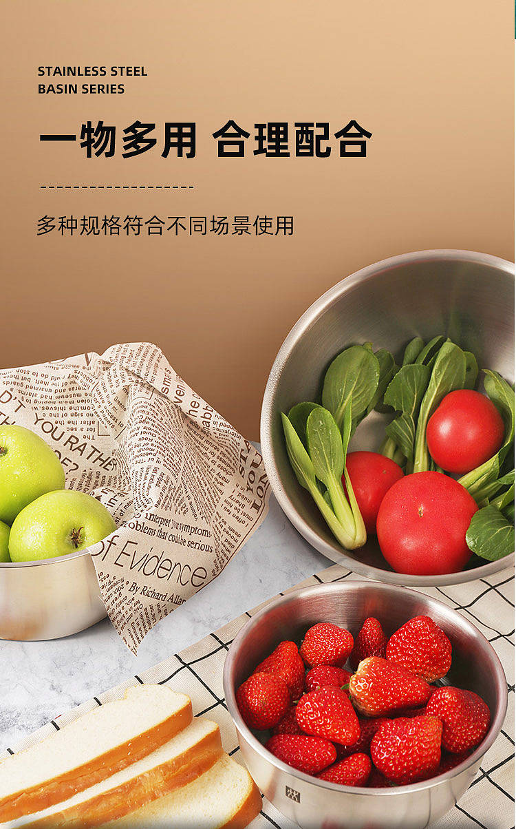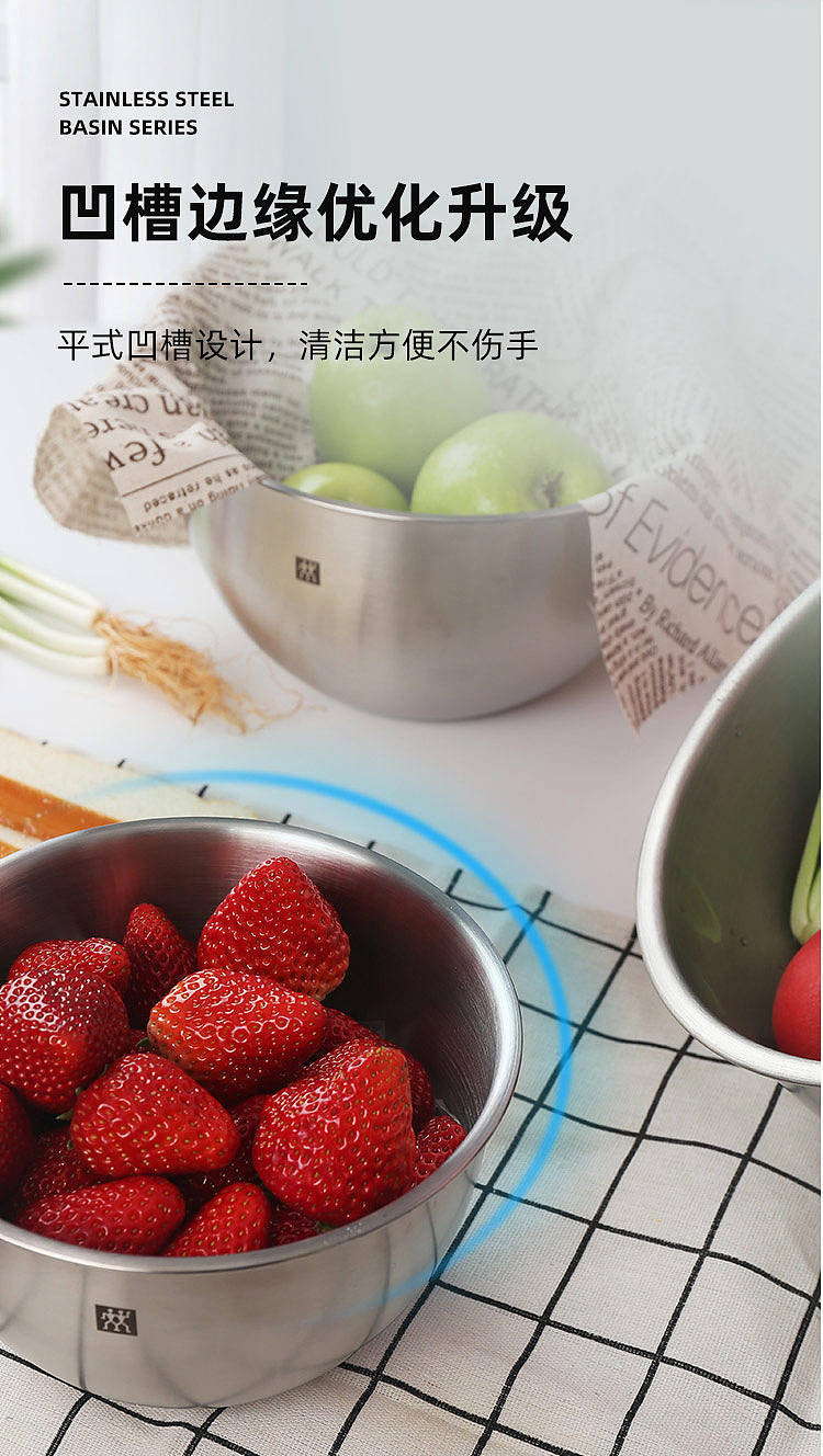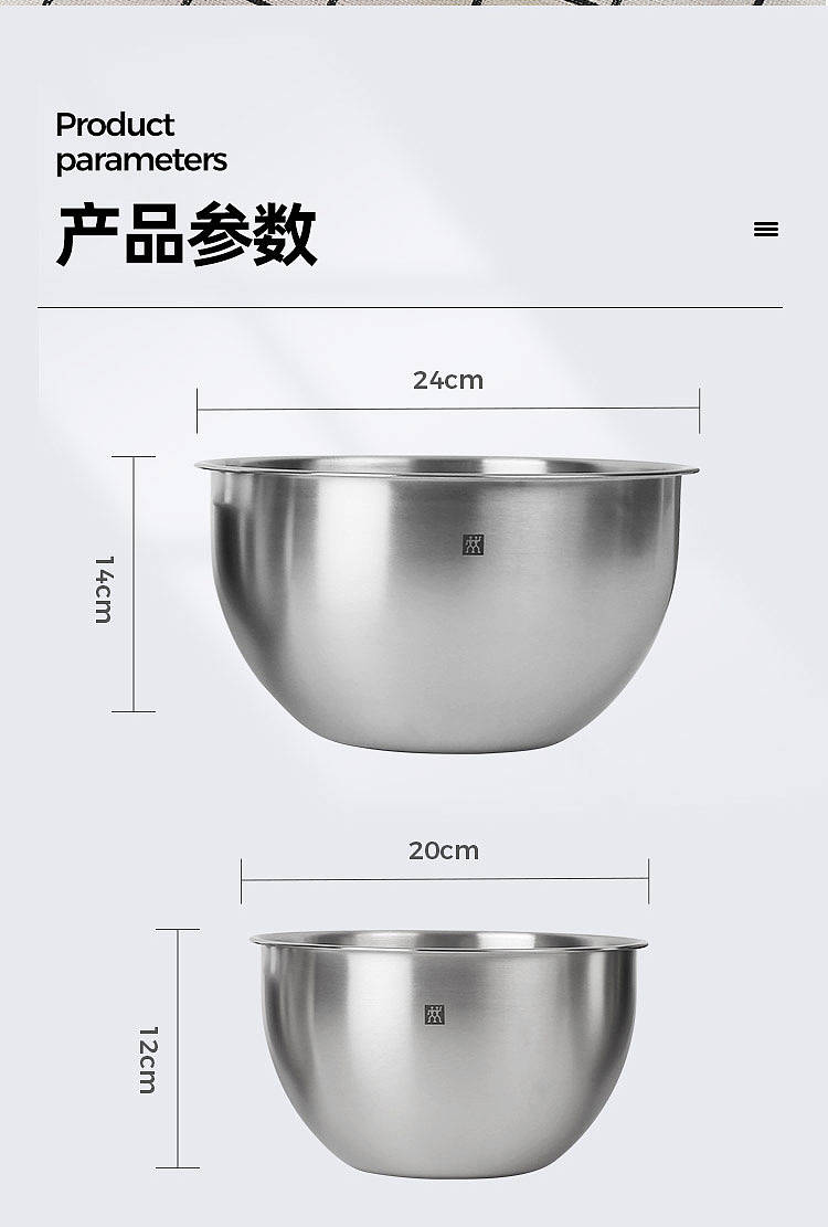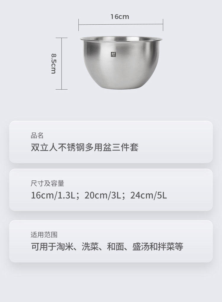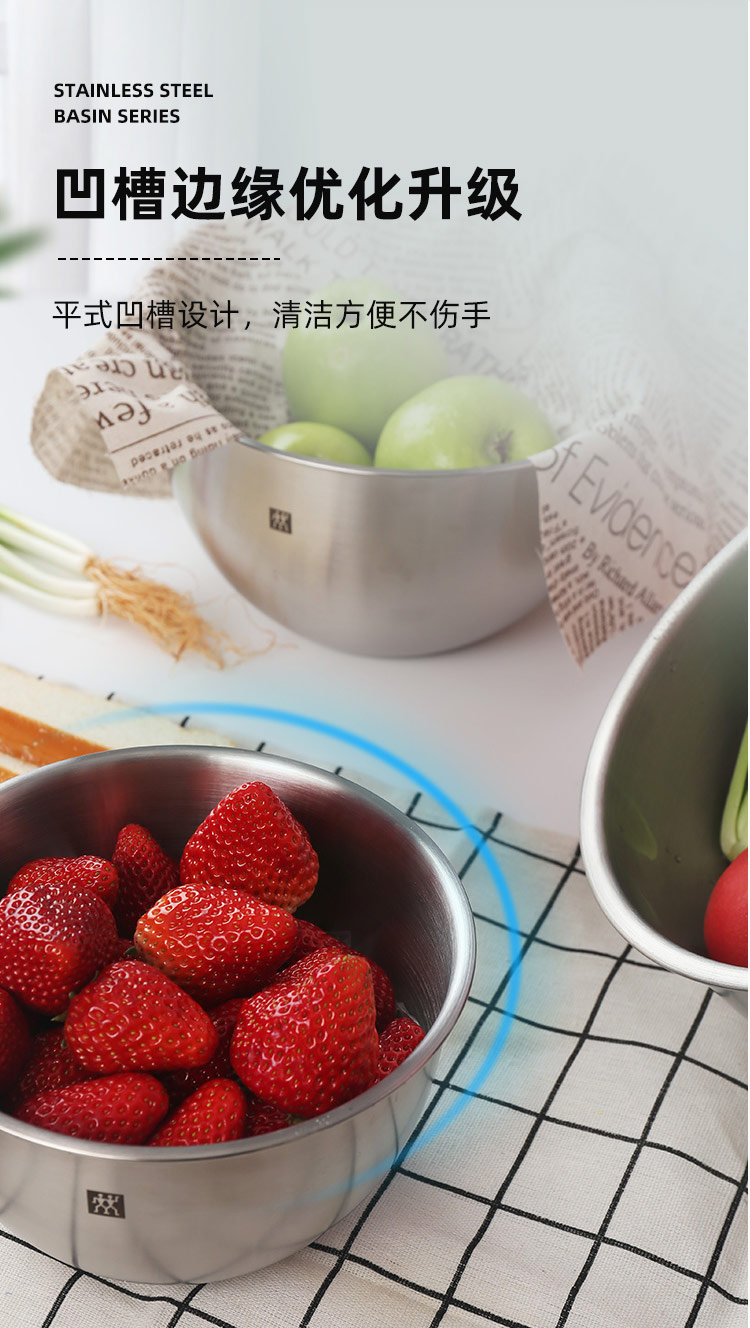 德国双立人不锈钢圆形沙拉盆汤盆洗菜盆和面盆打蛋盆3件套