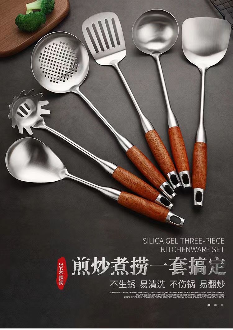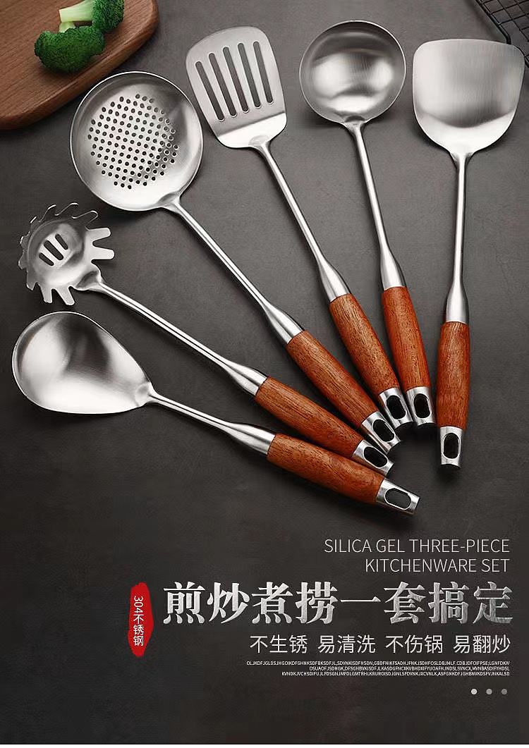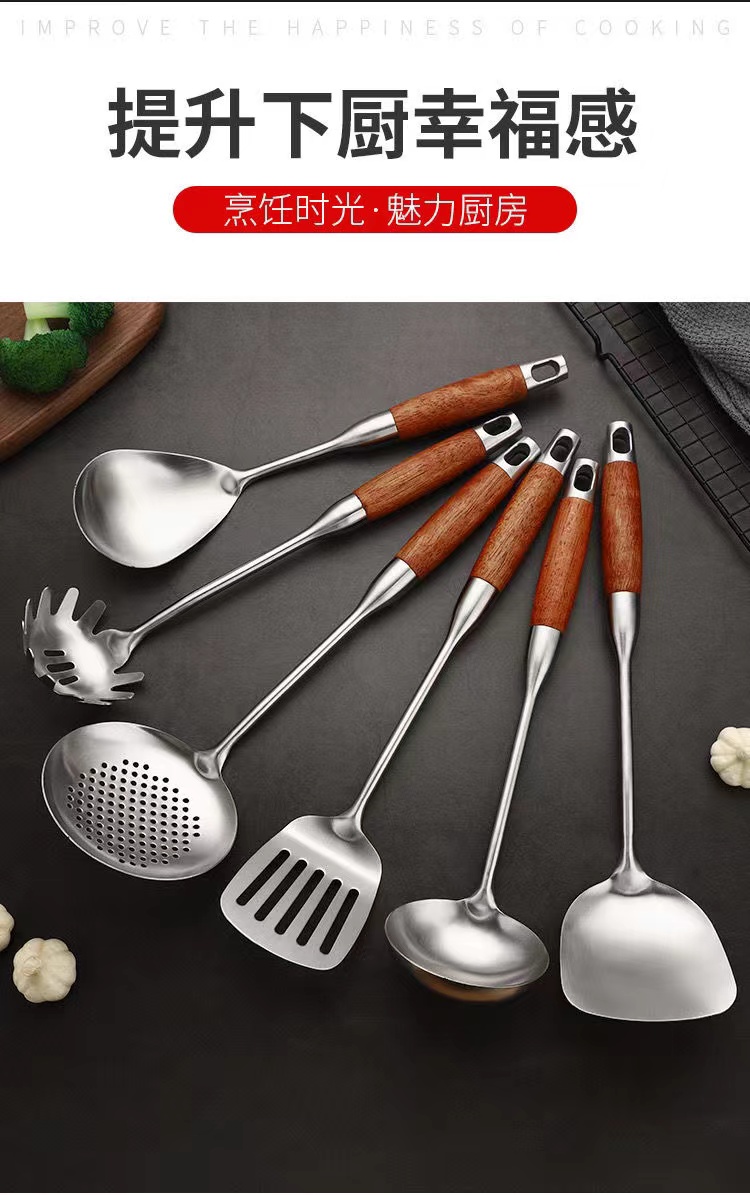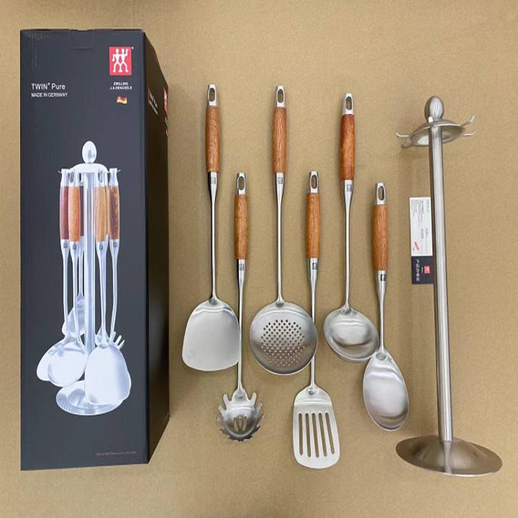 德国双立人高级花梨木中空防烫锅铲勺厨具七件套