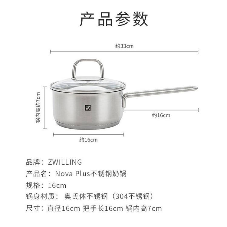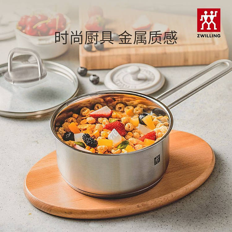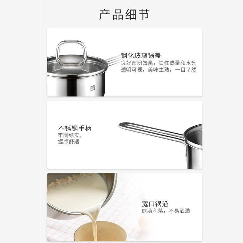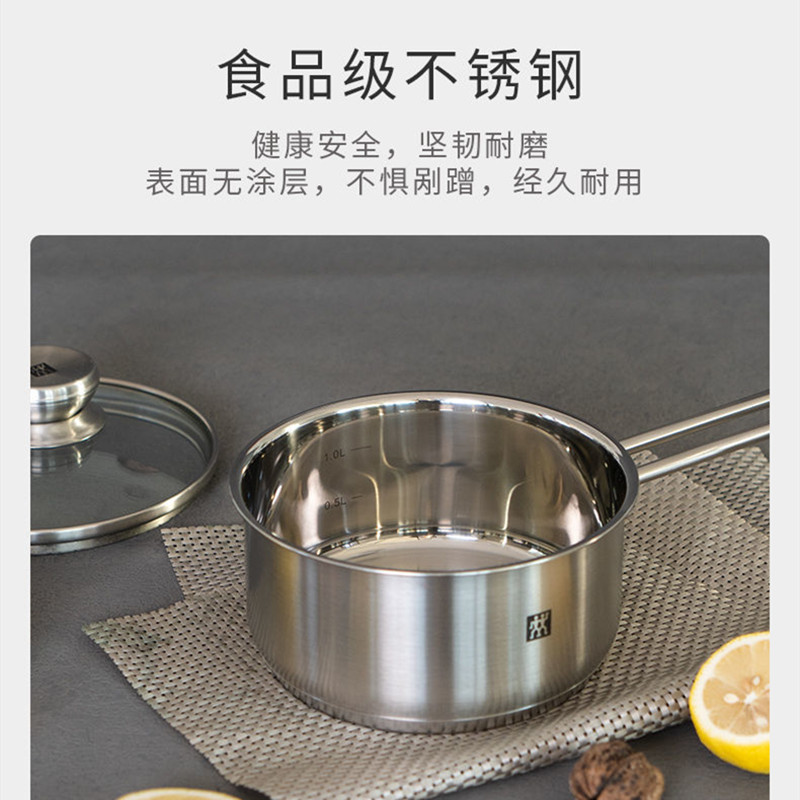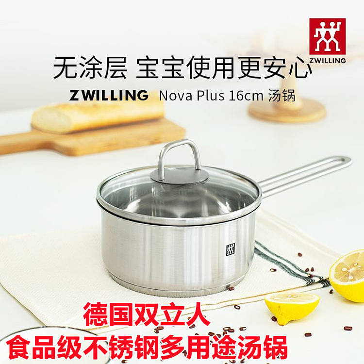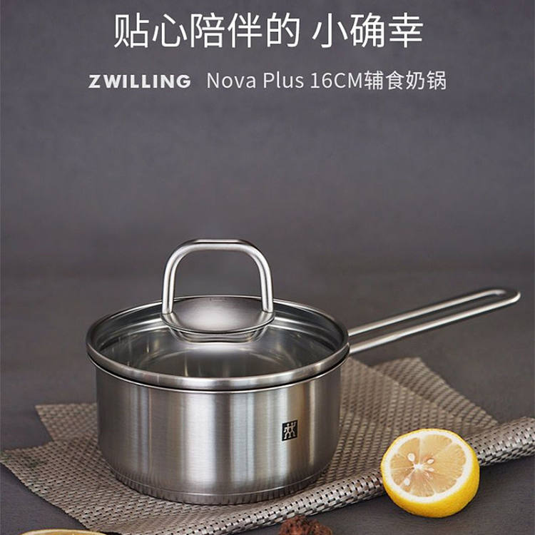 德国双立人带盖多功能16cm不锈钢小奶锅汤锅泡面锅