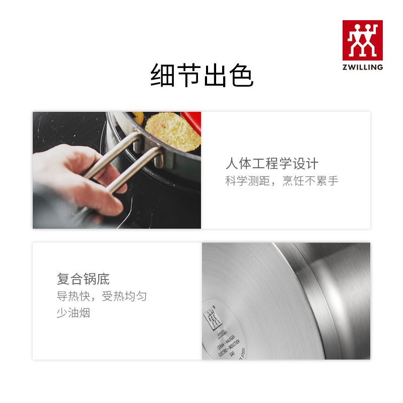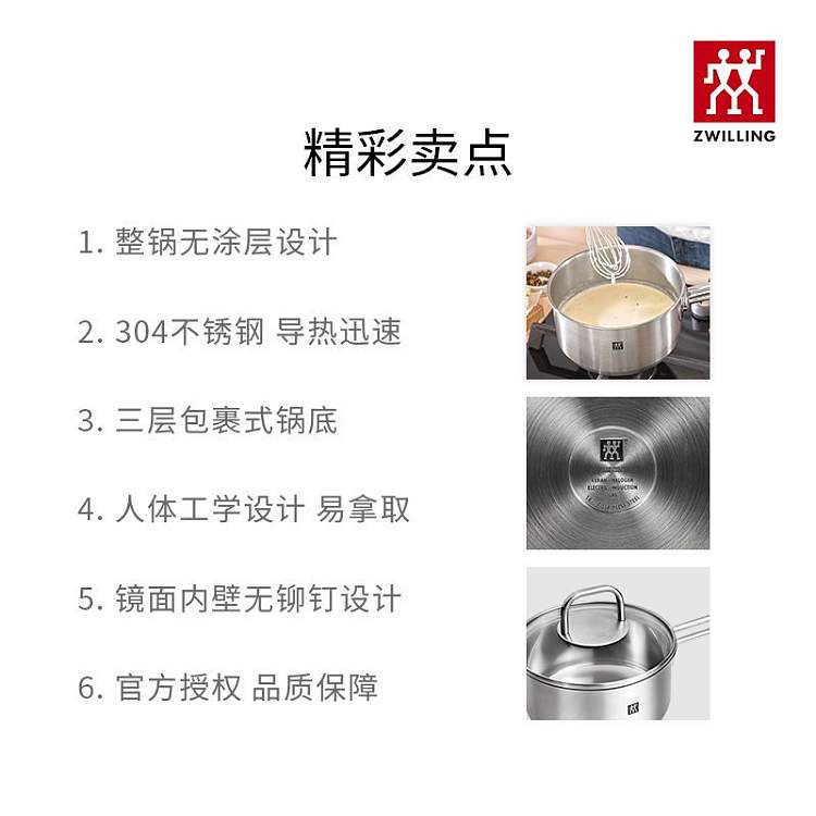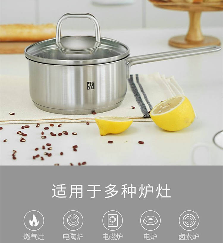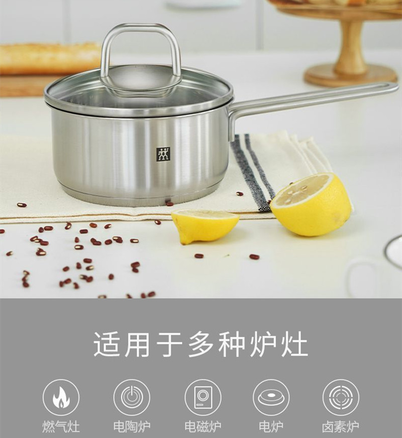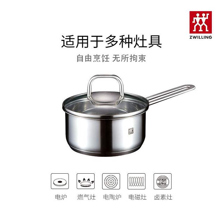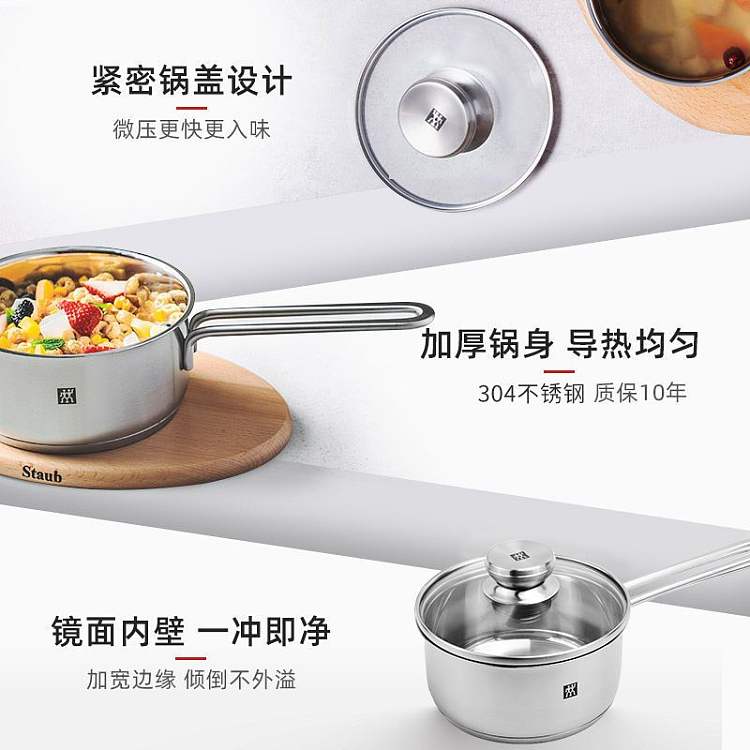 德国双立人带盖多功能16cm不锈钢小奶锅汤锅泡面锅