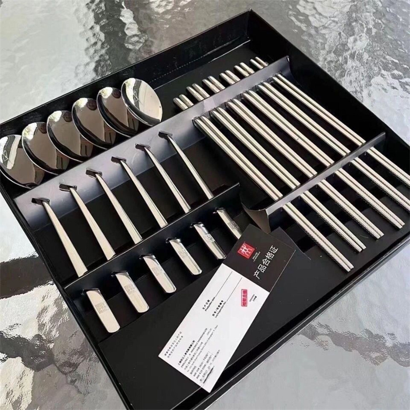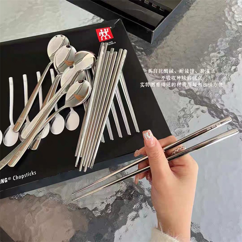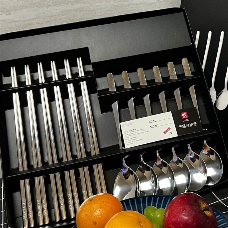 德国双立人304不锈钢餐具筷子勺子十二件套礼盒