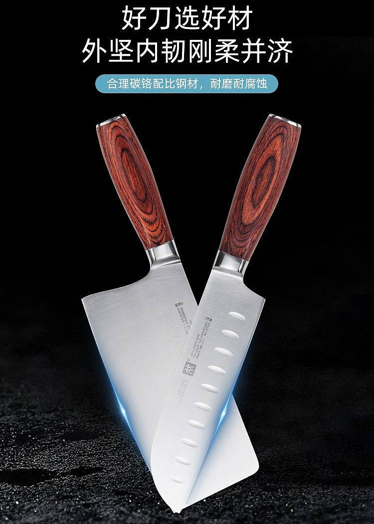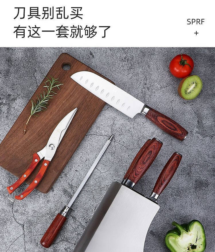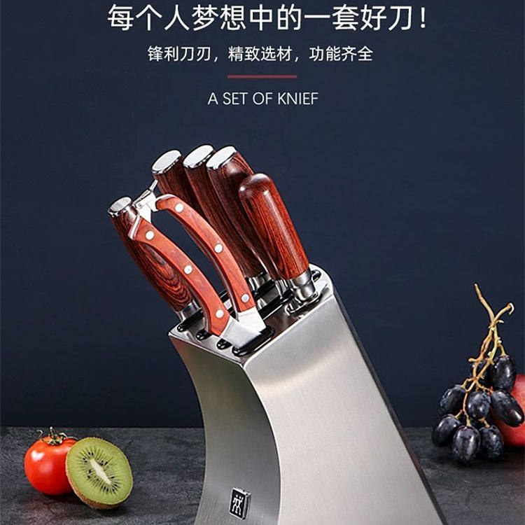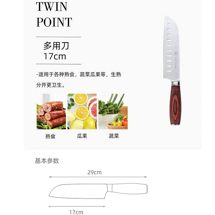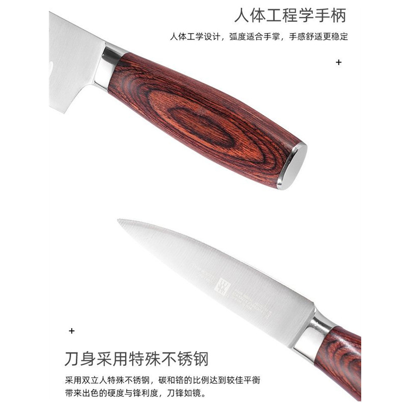 德国双立人不锈钢多功能刀剪套装七件套 梨花木