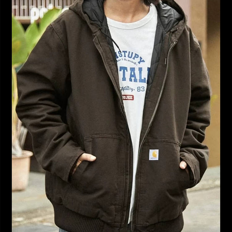 Carhartt 卡哈特连帽棉夹克 卡其色 男女同款 水洗棕