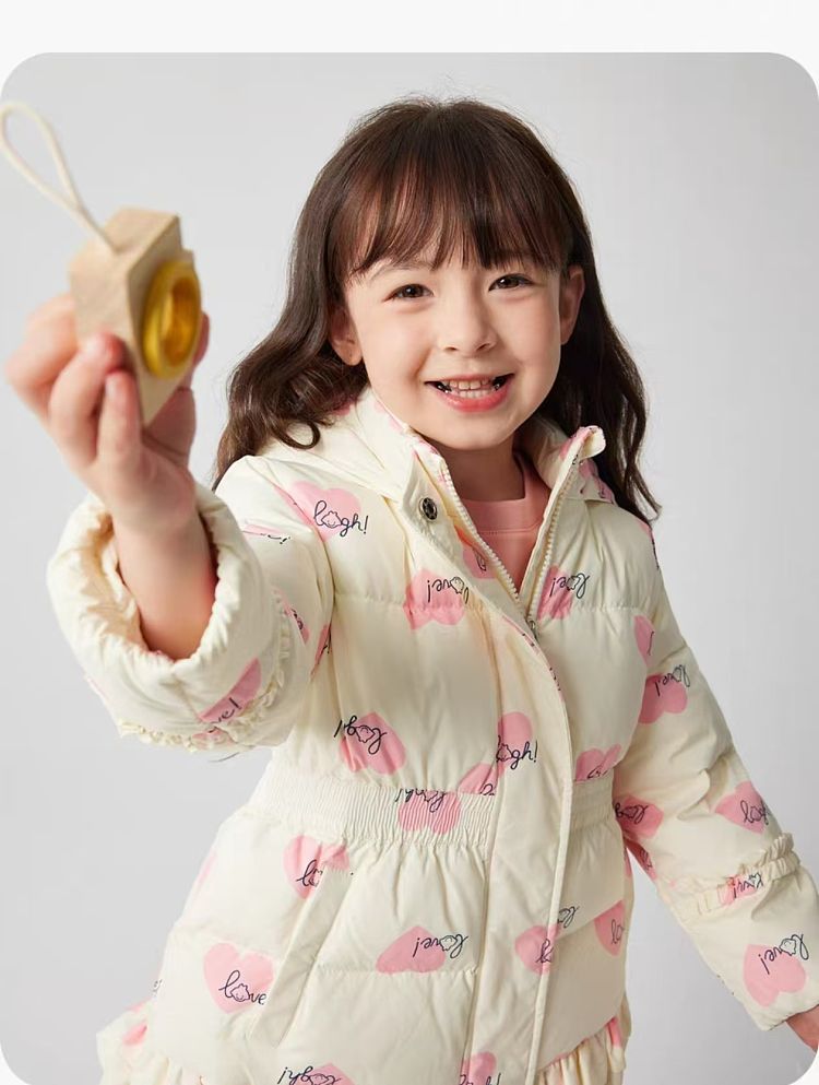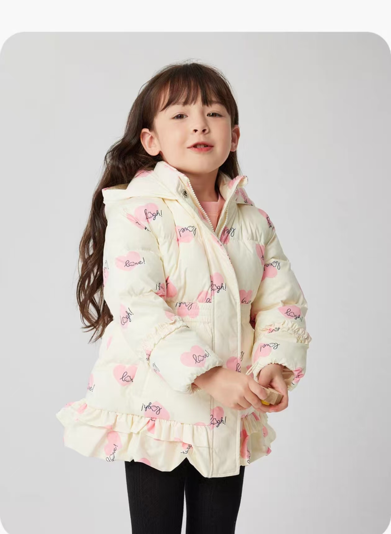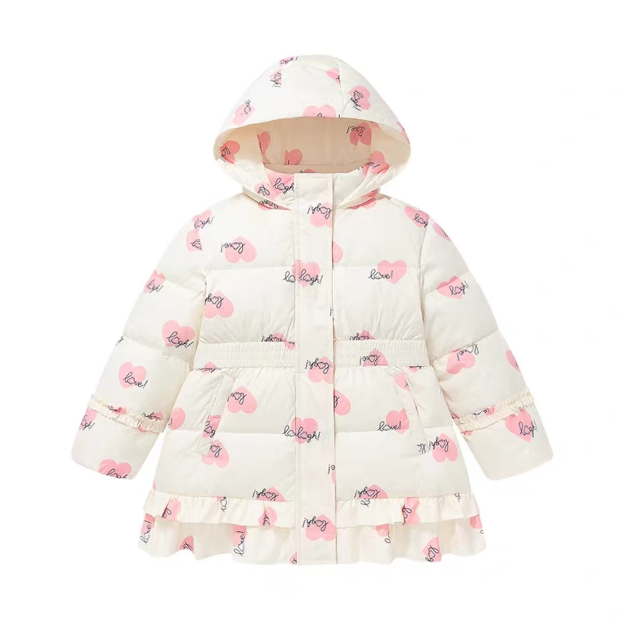 【女童】 阿路和如童装冬季新款儿童女童中长款羽绒服印花荷叶白色