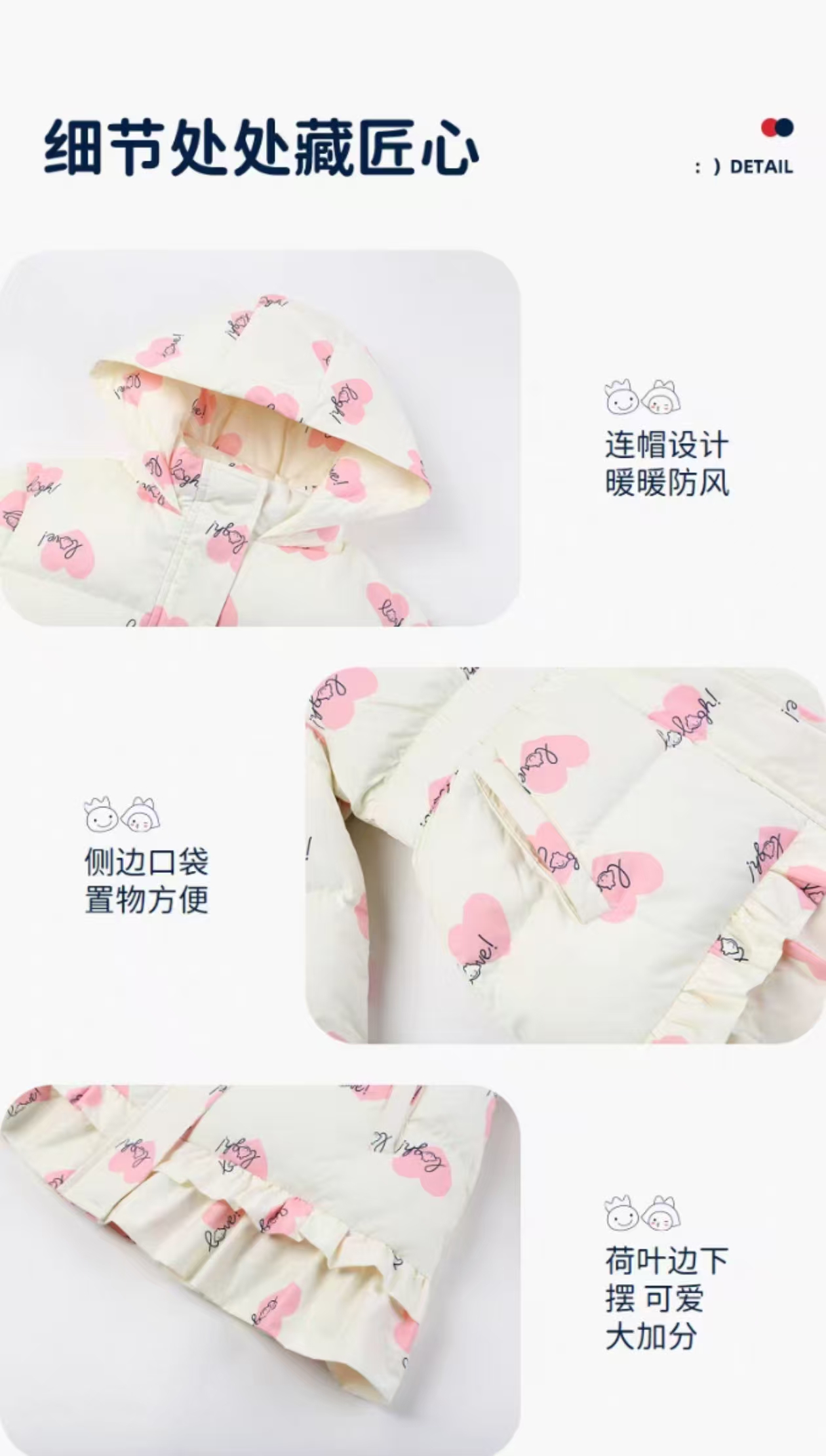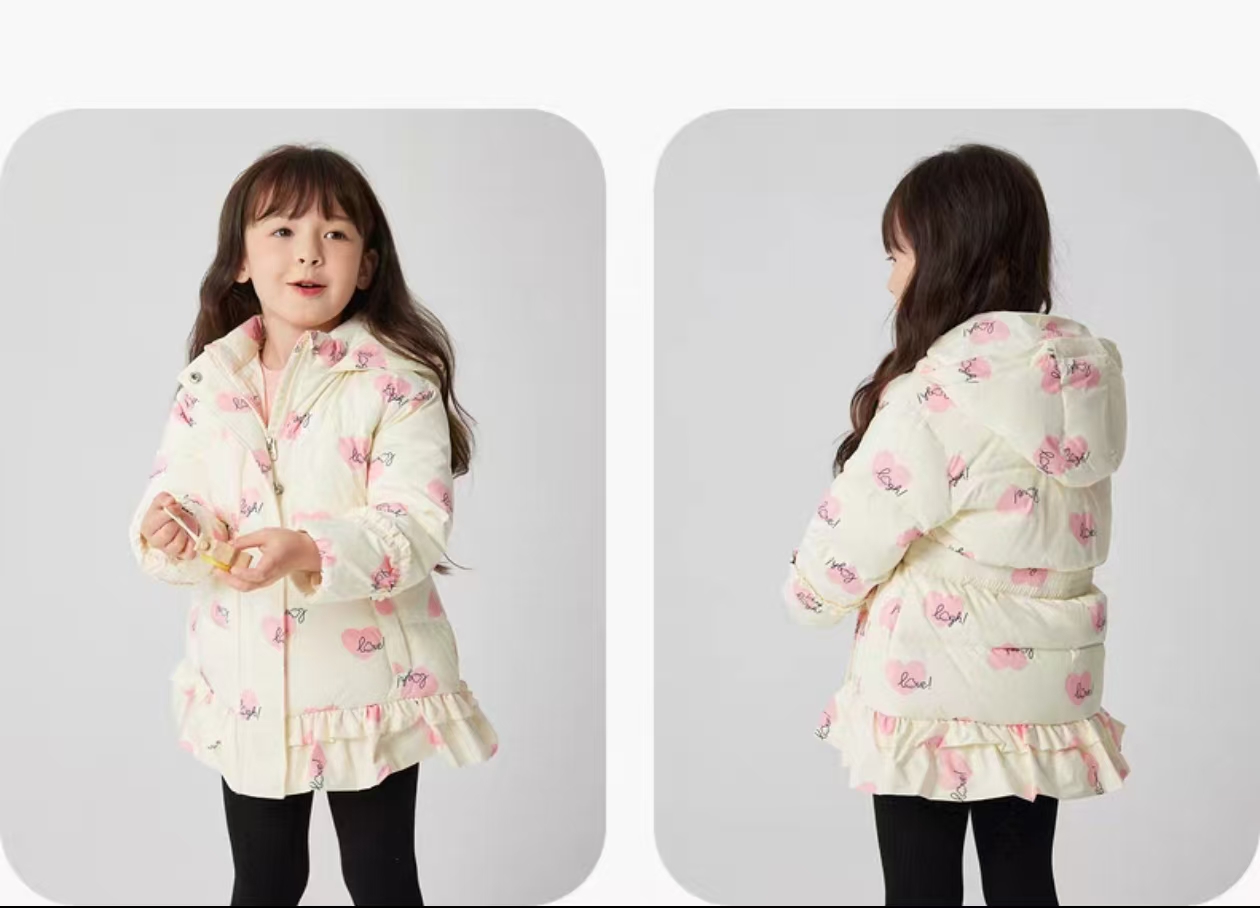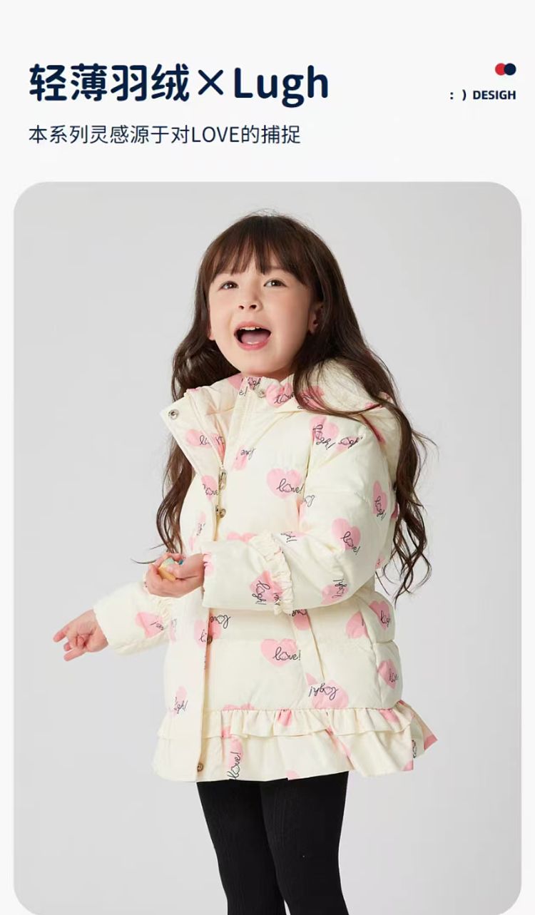 【女童】 阿路和如童装冬季新款儿童女童中长款羽绒服印花荷叶白色