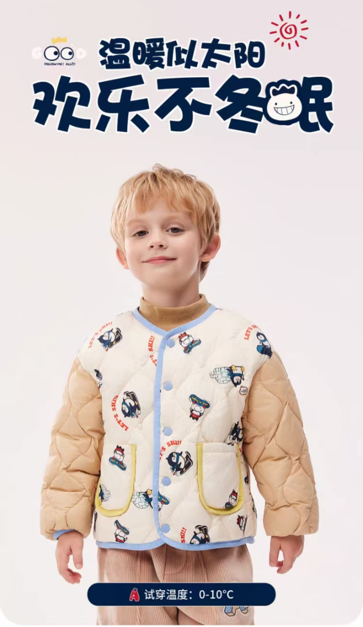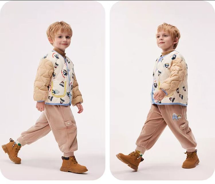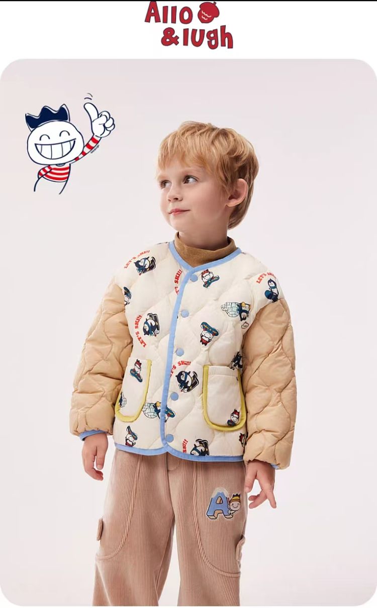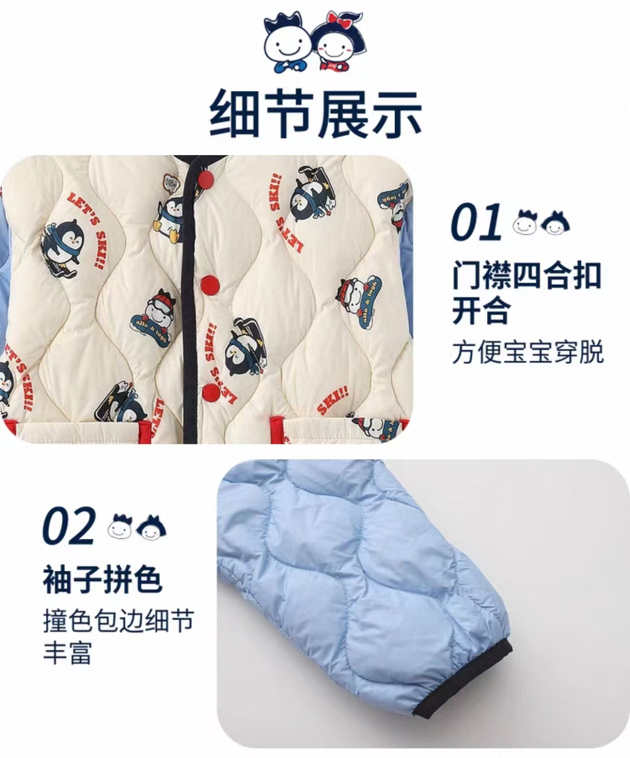 【男女童同款 】 儿童装轻暖鸭绒羽绒服男女同款假两件外套 米色