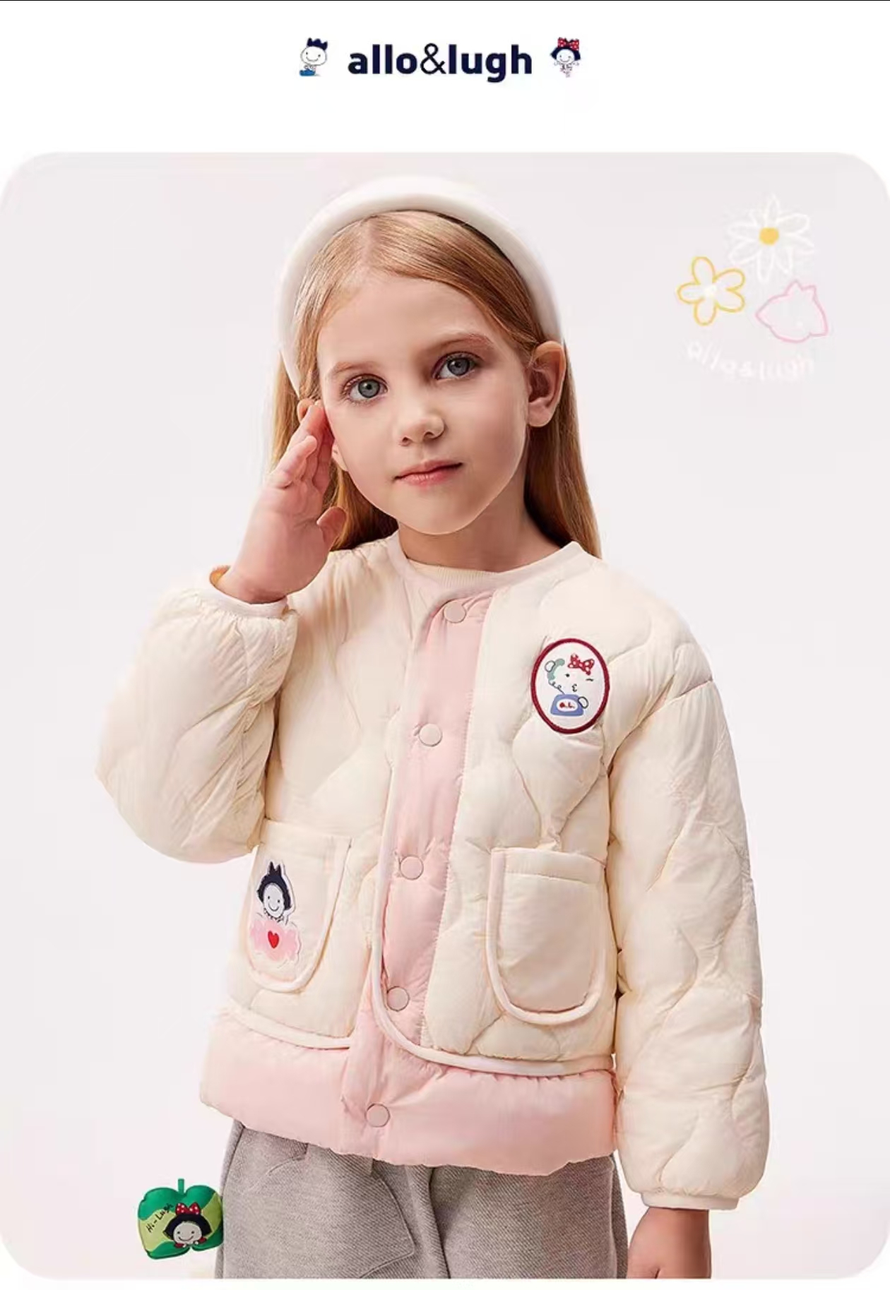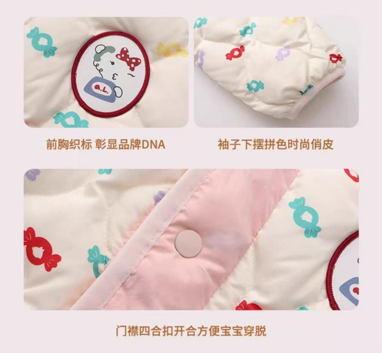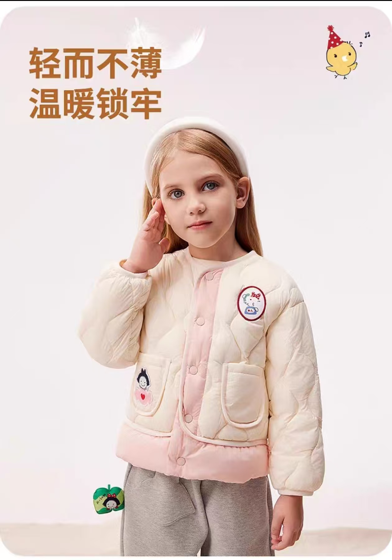 【男女童同款 】 儿童装轻暖鸭绒羽绒服男女同款 拼色外套 粉色