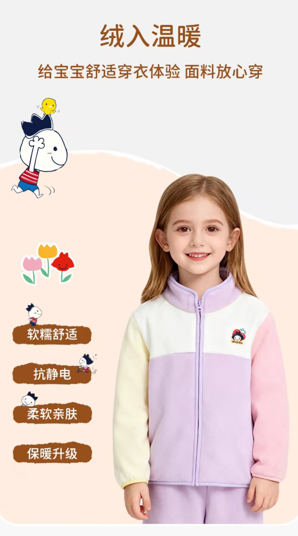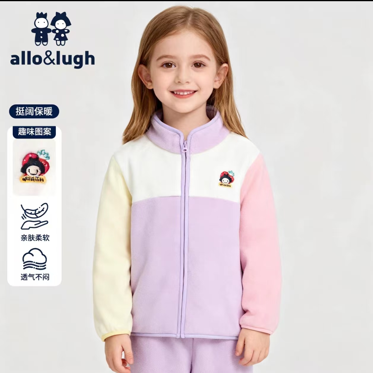 【女童】 阿路和如童装女童卫衣冬款绒衫卫衣 户外摇粒绒外套紫色