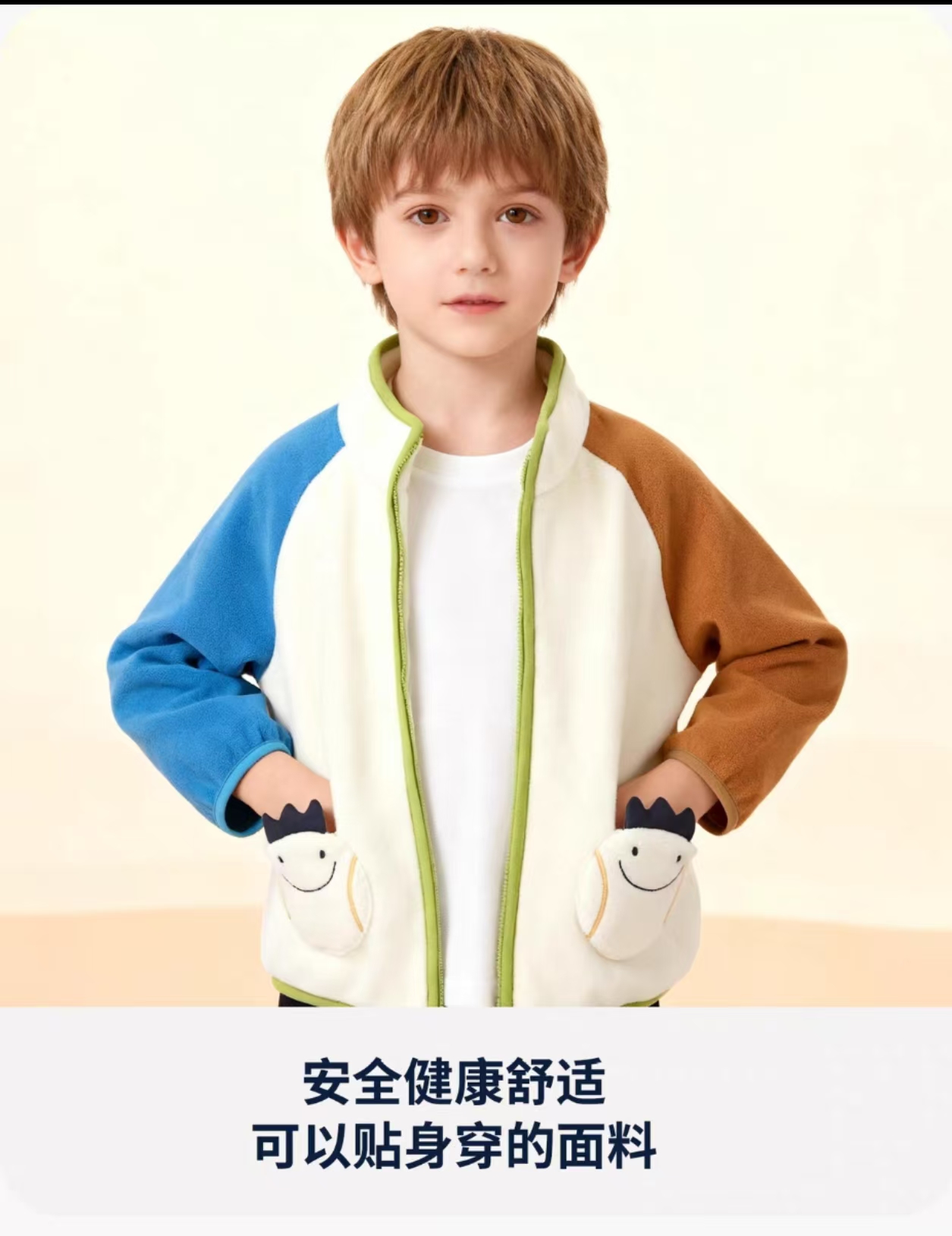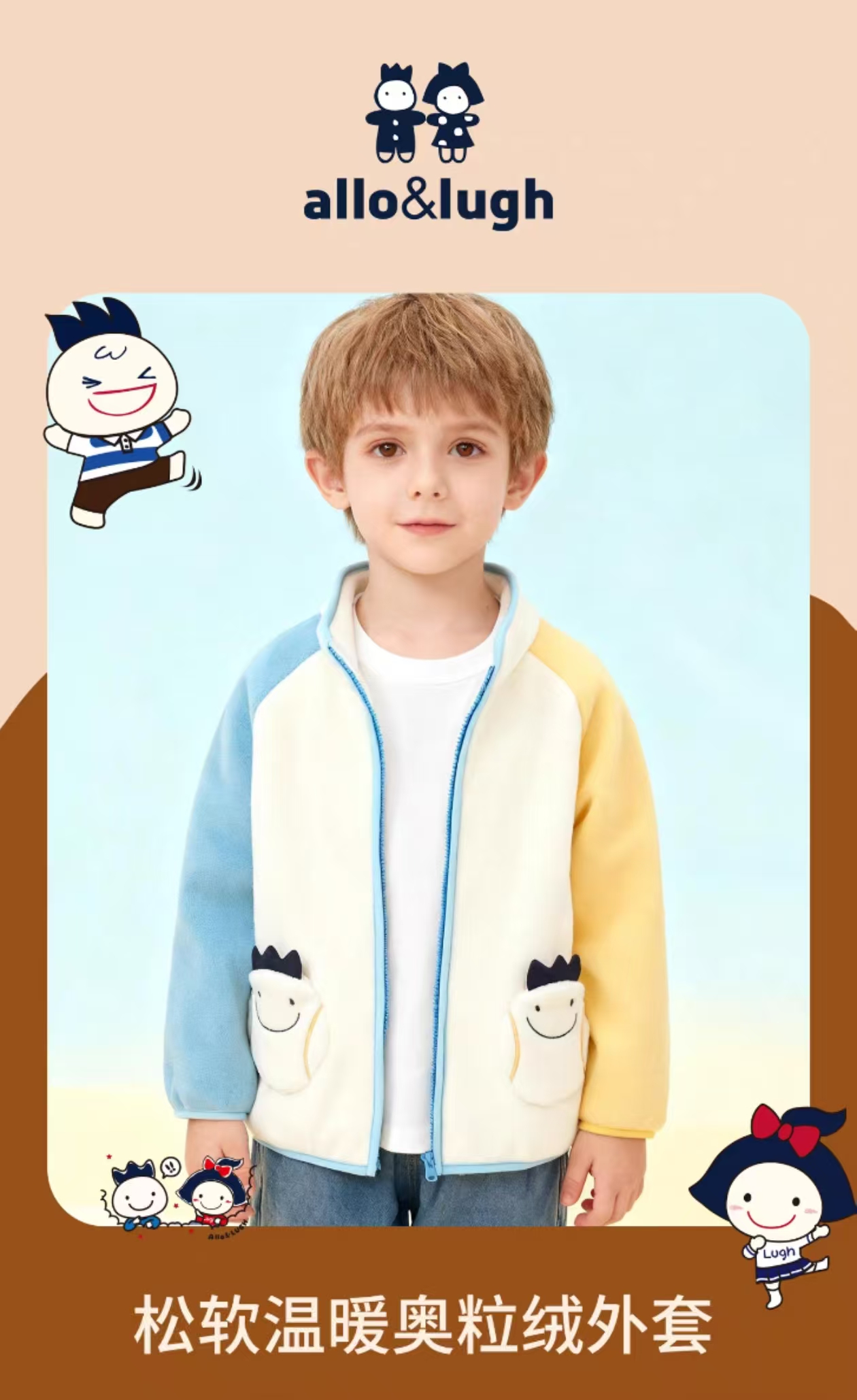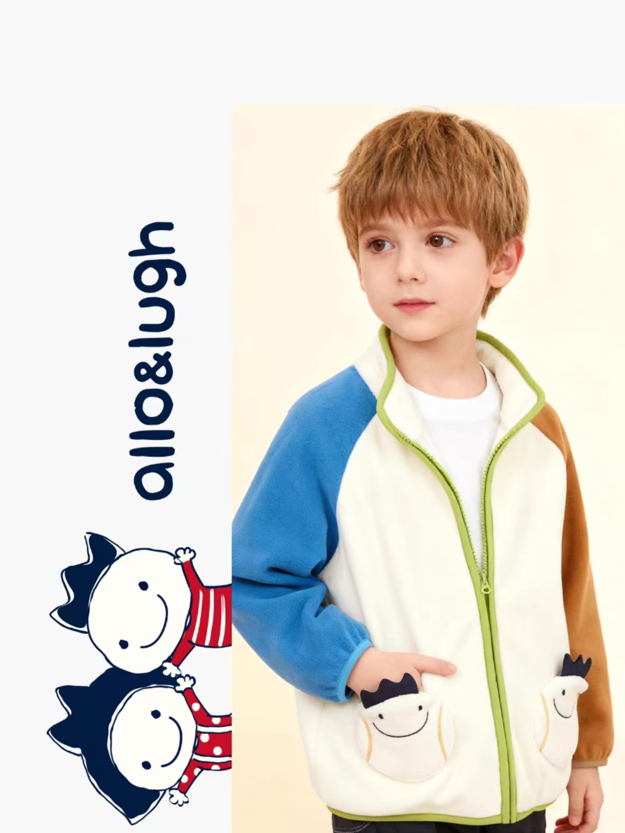 【男童】 阿路和如童装男童卫衣冬款 户外摇粒绒外套 拼色棕色