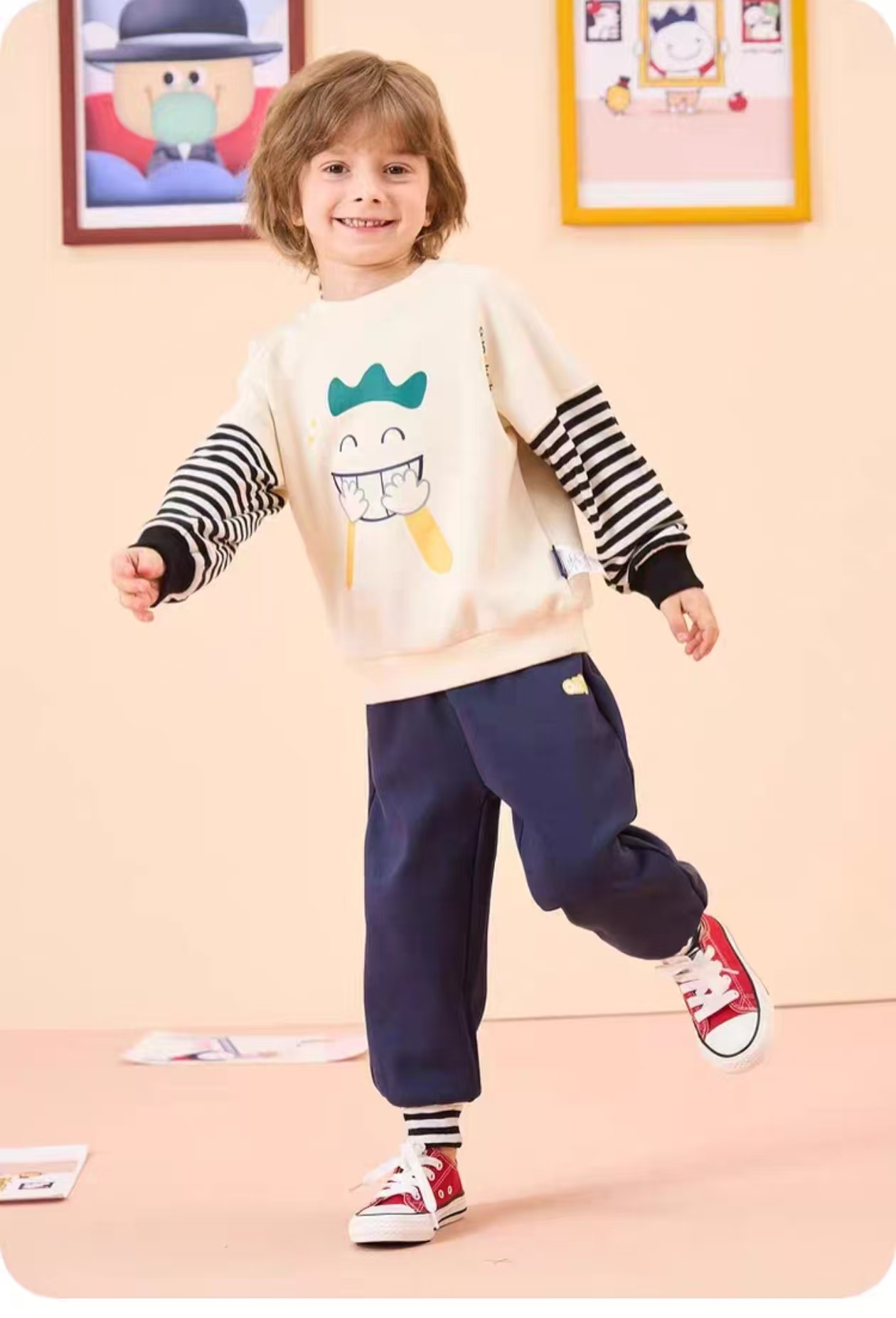【男童】 阿路和如男童冬季新款宽松卫裤加厚休闲裤 拼接藏青蓝