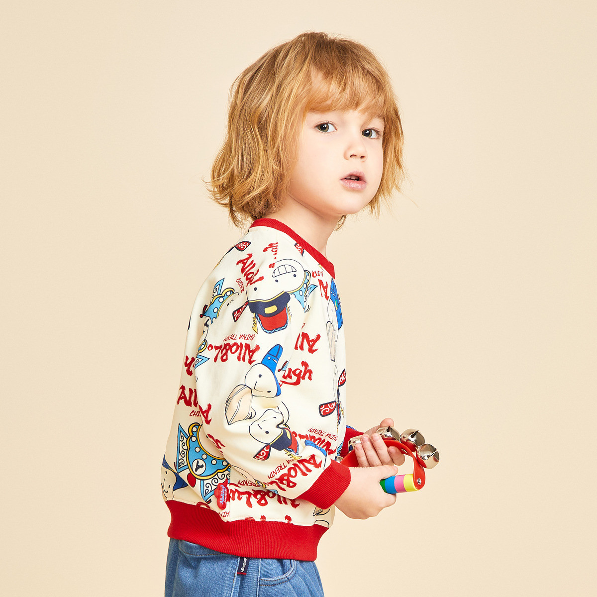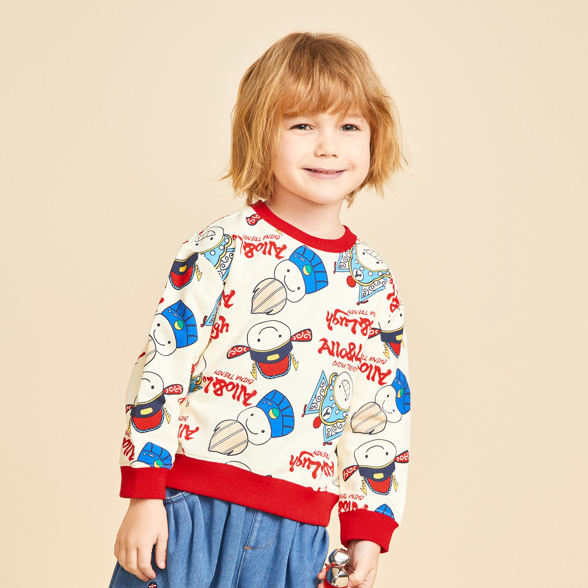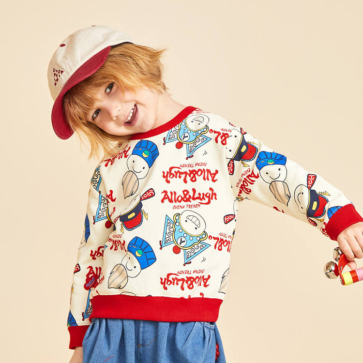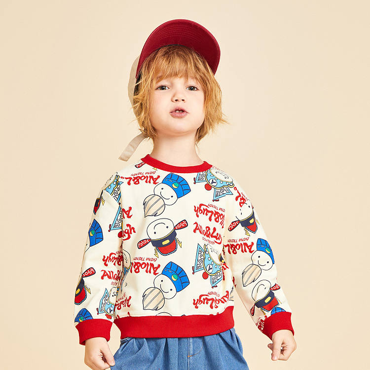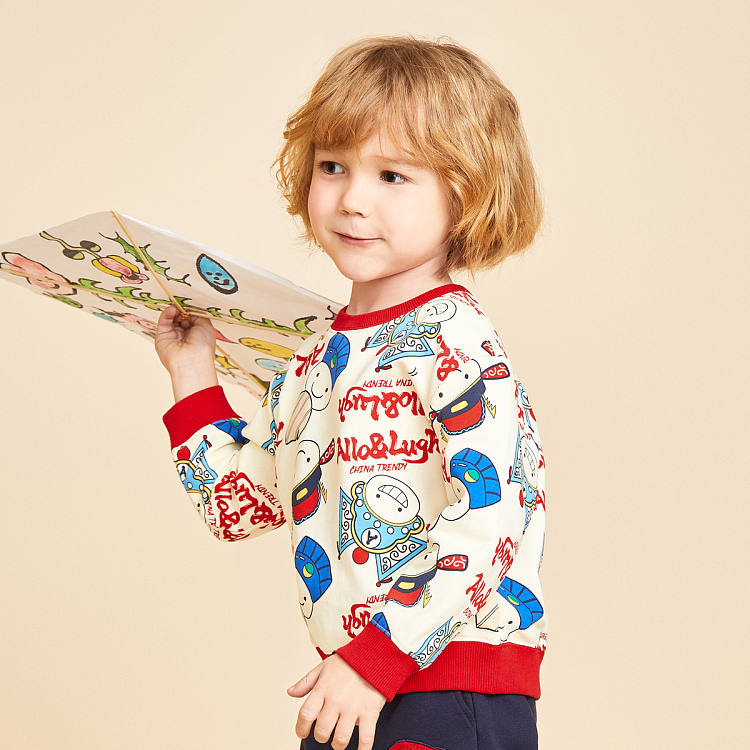【男童】 【国风系列】阿路和如新款男童卫衣圆领印花时尚上衣服