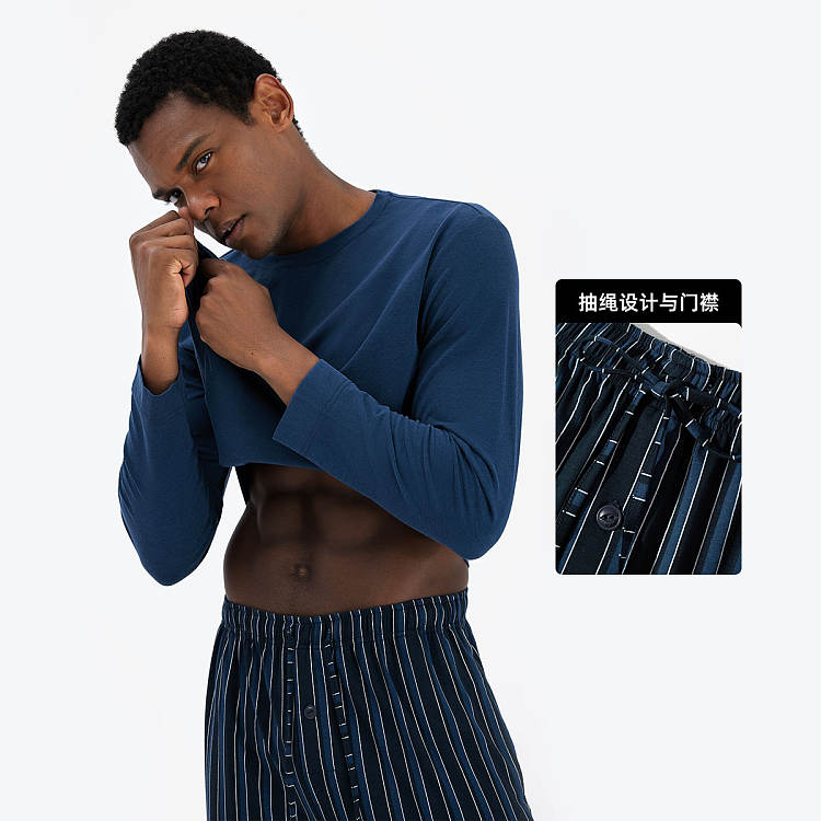 【男款】 男士薄款莫代尔圆领套头长袖家居服睡衣套装