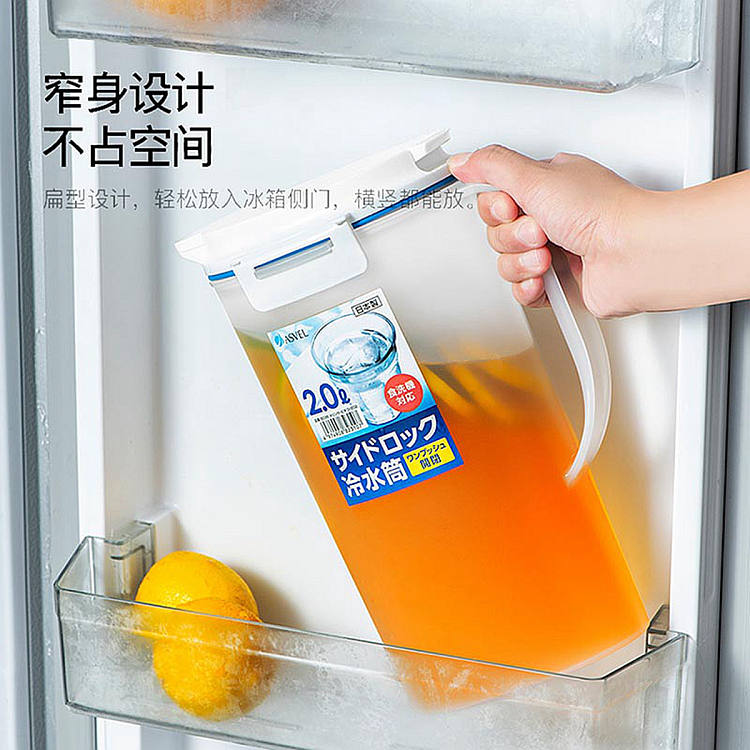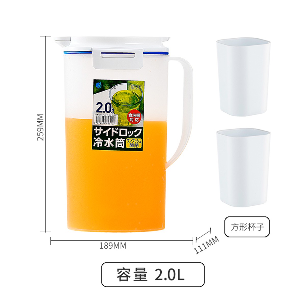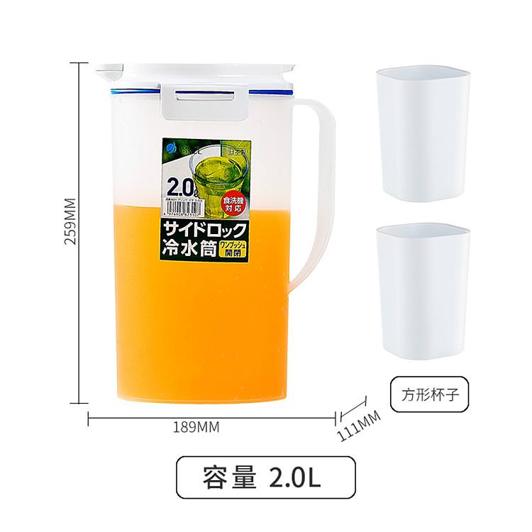 日本进口耐高温家用防爆冷水壶食品级大容量冰箱果汁壶磨砂凉水壶2L189mm*111mm*259mm