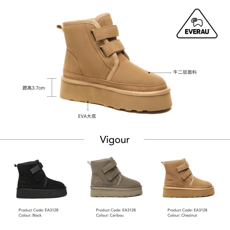【女款】 VigourLogo压花魔术粘贴束带厚底雪地靴