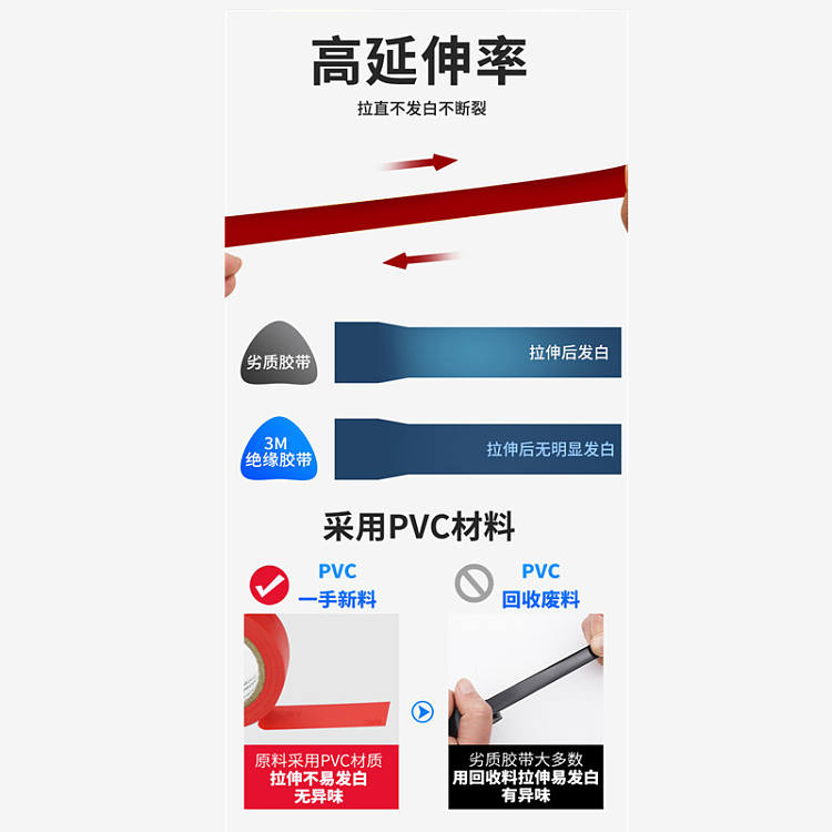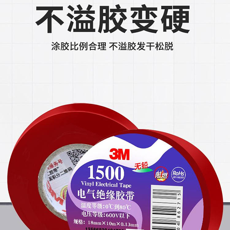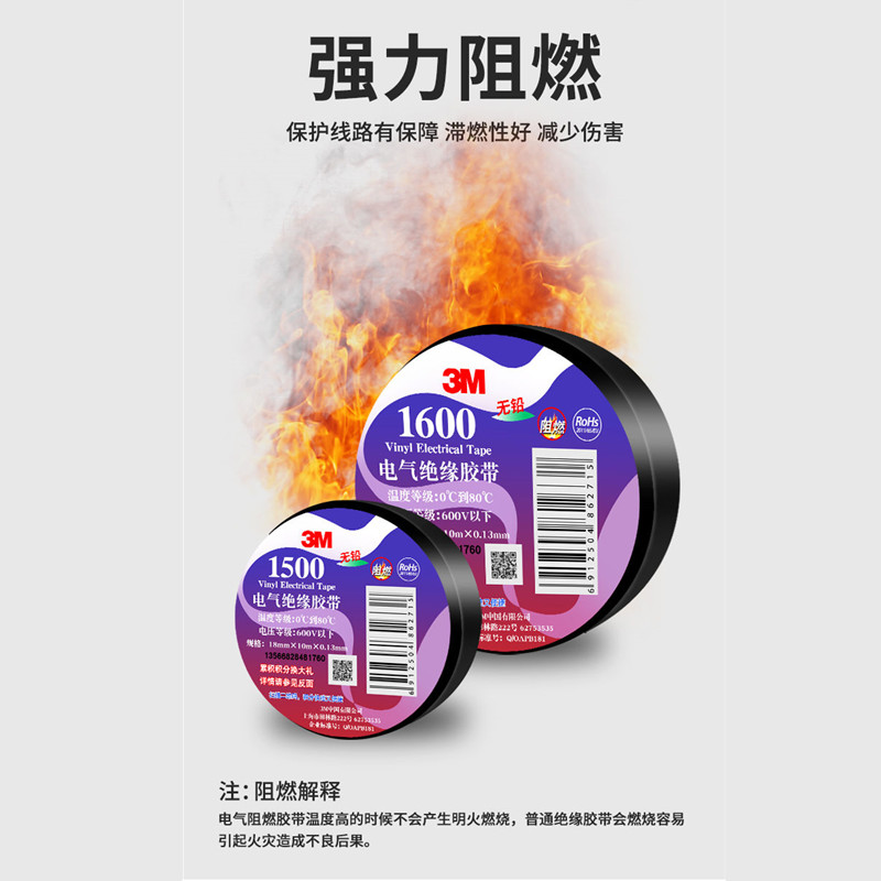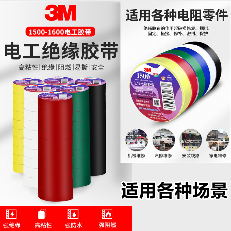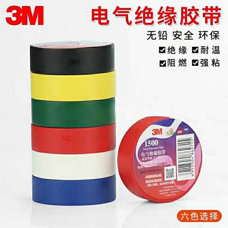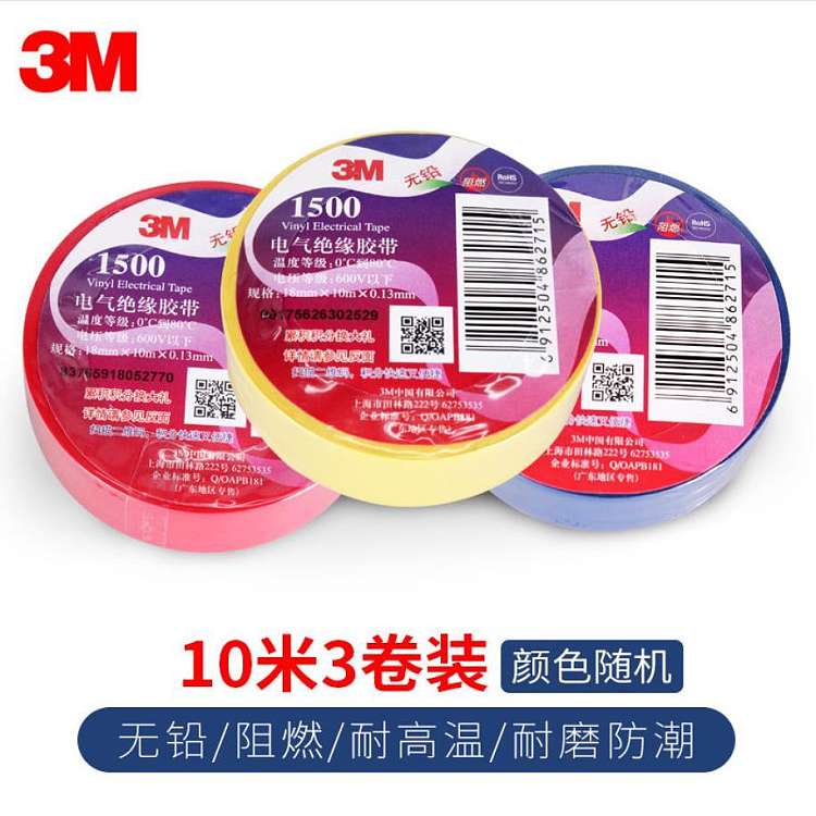 美国3M电工电气胶布绝缘无铅防水耐高温阻燃 10米*1.8cm 3卷