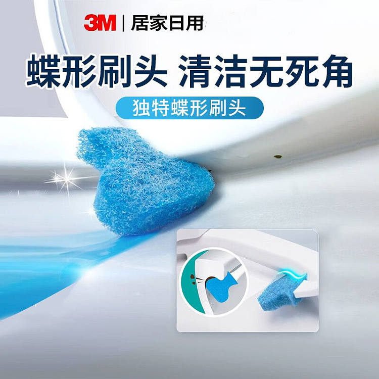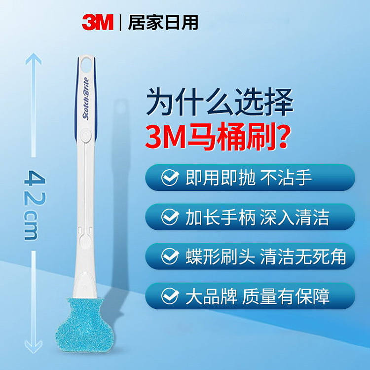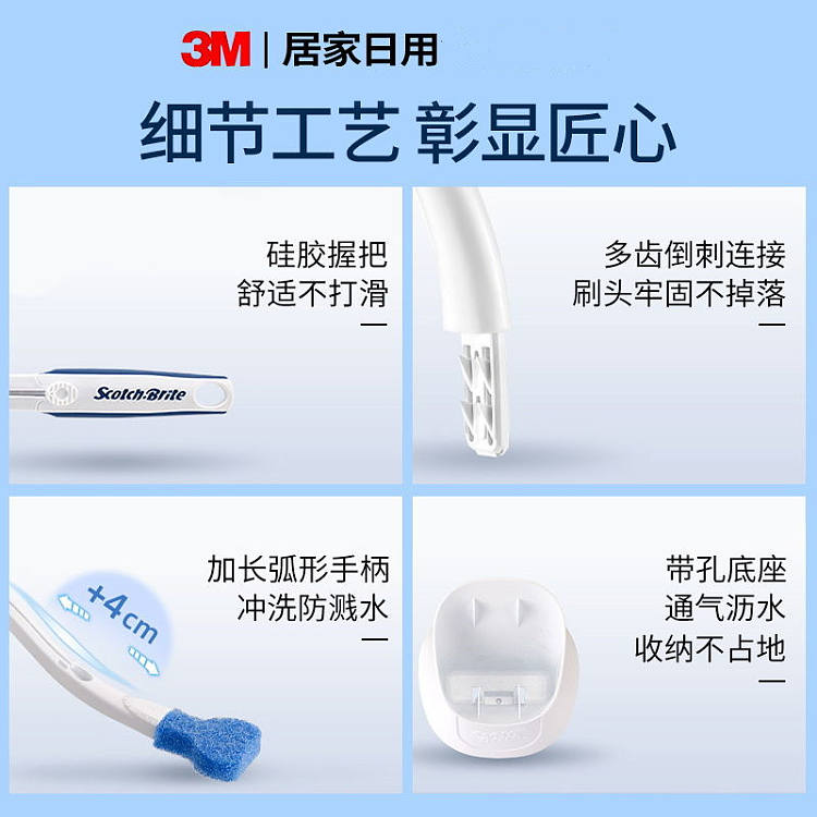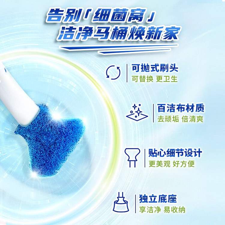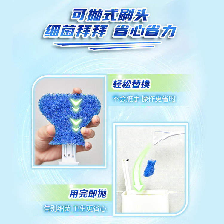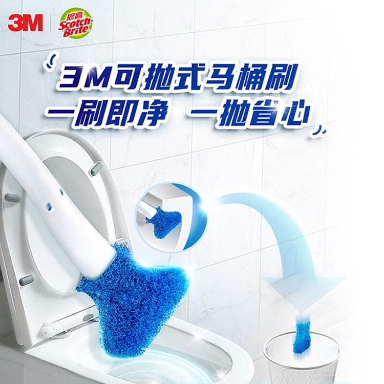 3M思高一次性马桶刷 无死角 可抛式 长柄带底座 1柄9头1底座