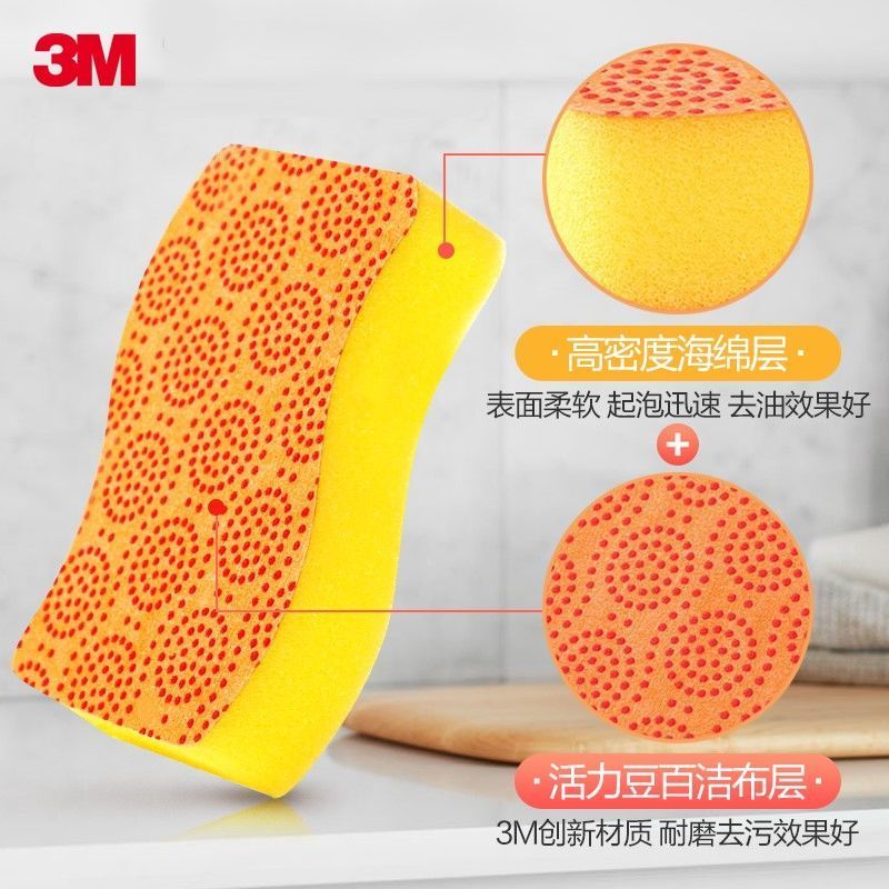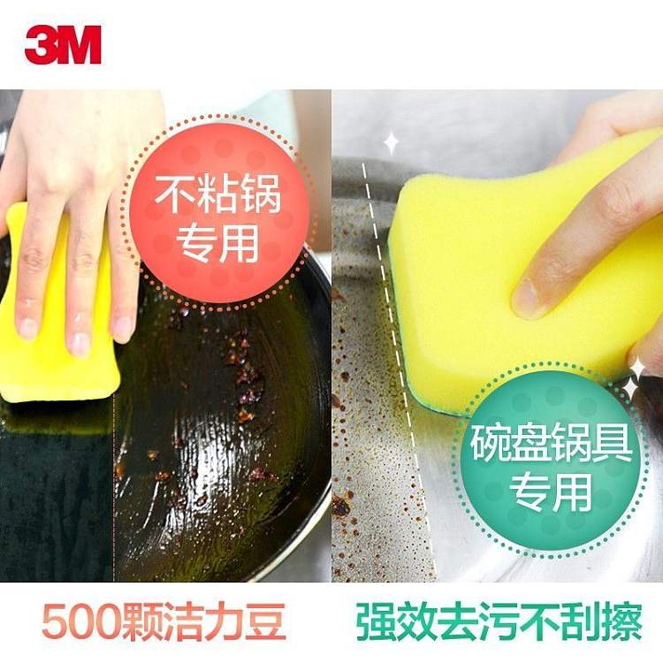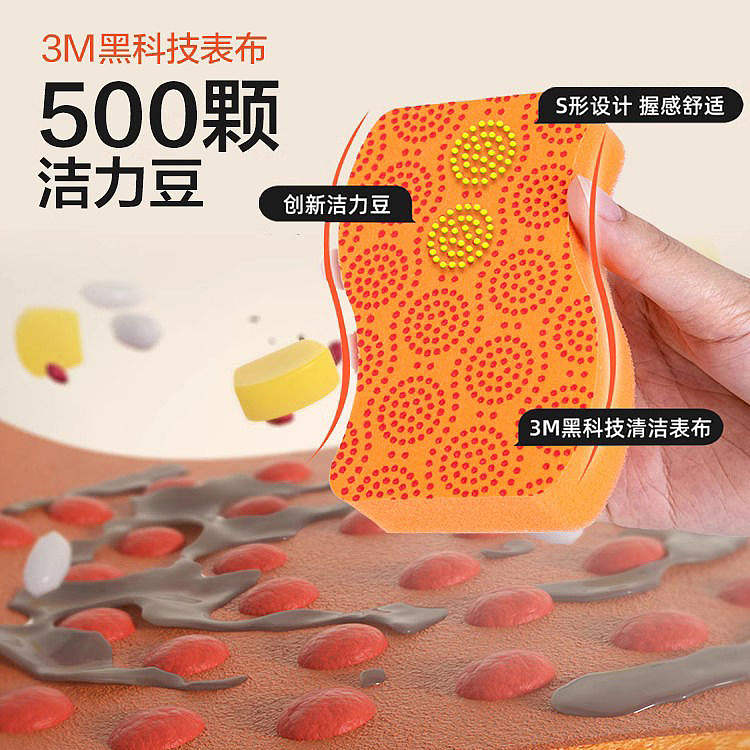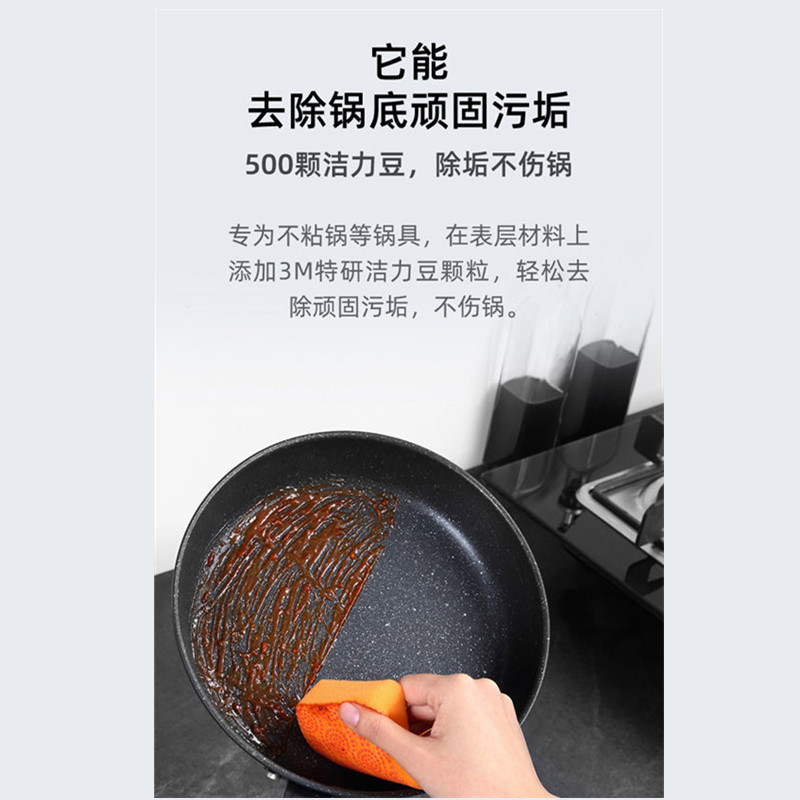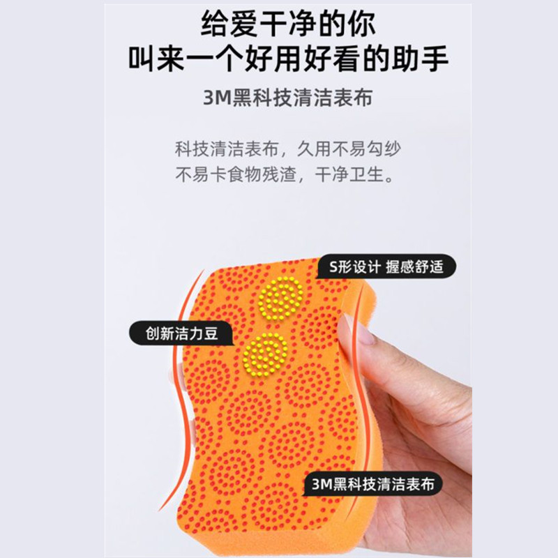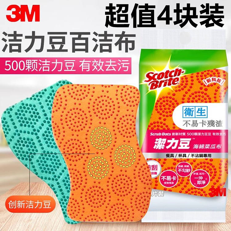 美国3M思高洁力豆清洁海绵块不粘锅不卡残渣 强力去污 4块