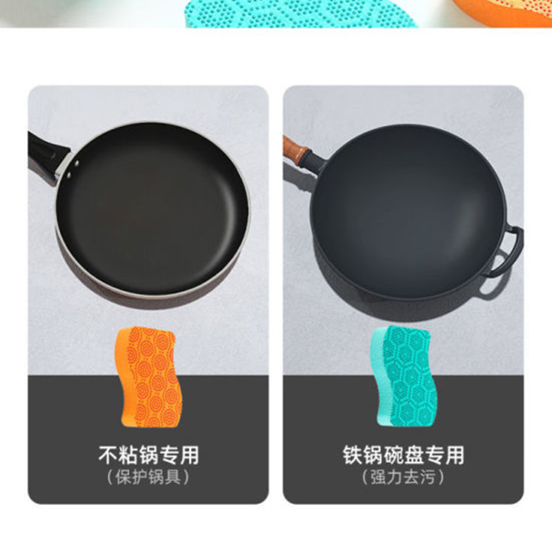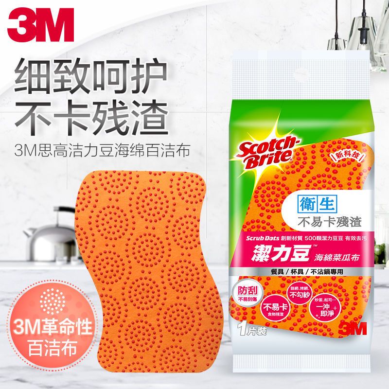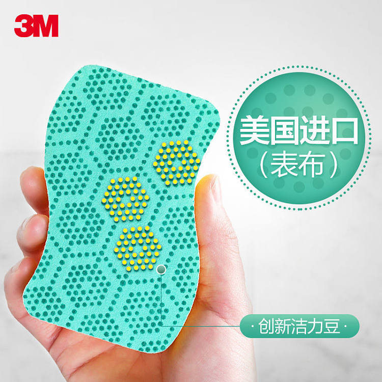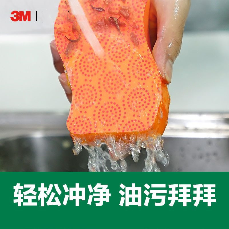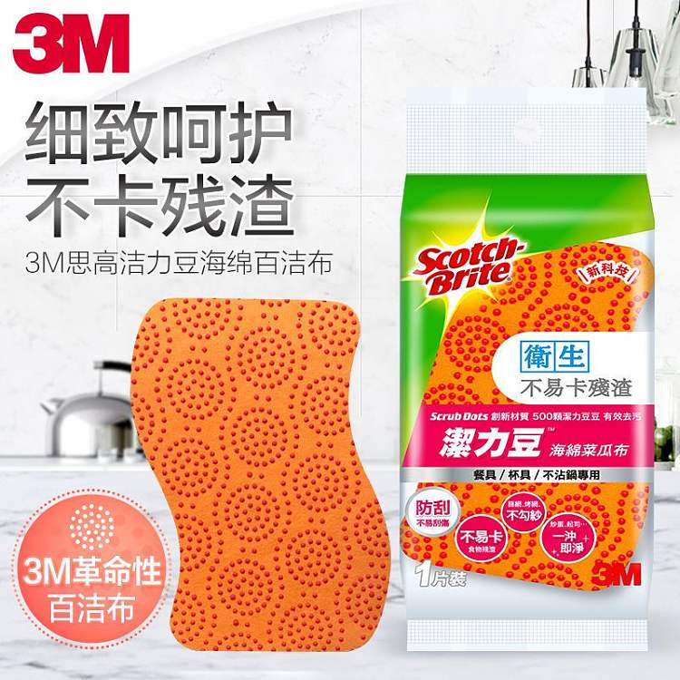 美国3M思高洁力豆清洁海绵块不粘锅不卡残渣 强力去污 4块