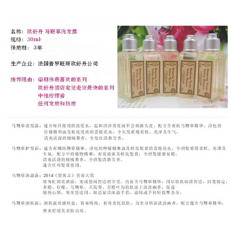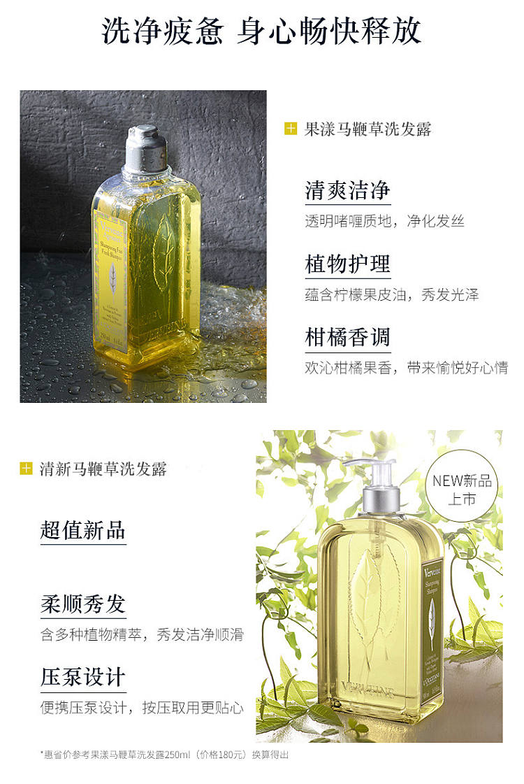 欧舒丹马鞭草清凉洗发护发套装 旅行健身便携装 30ml*2