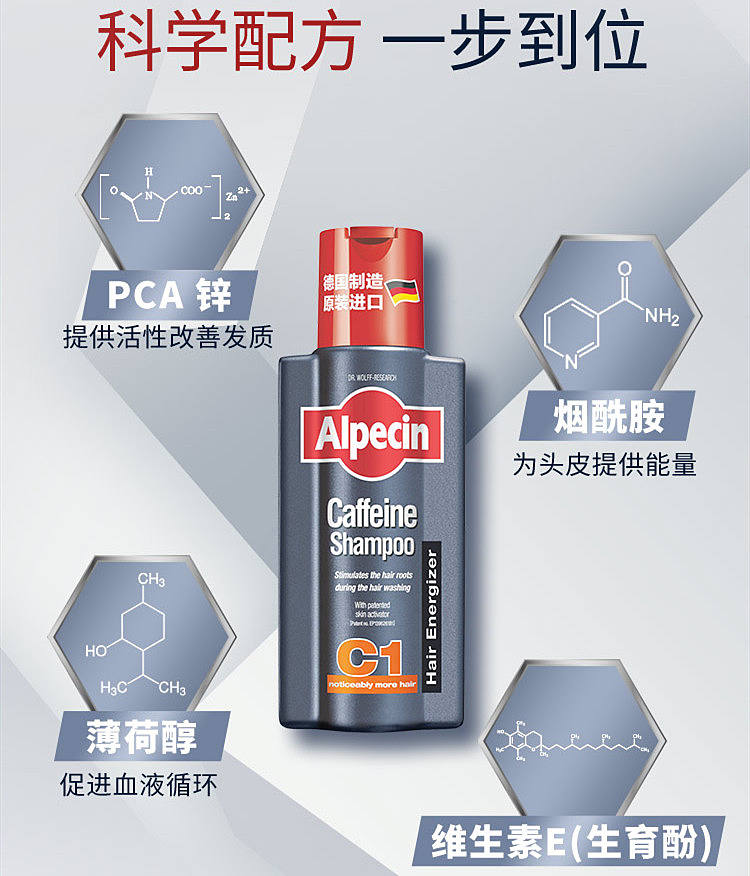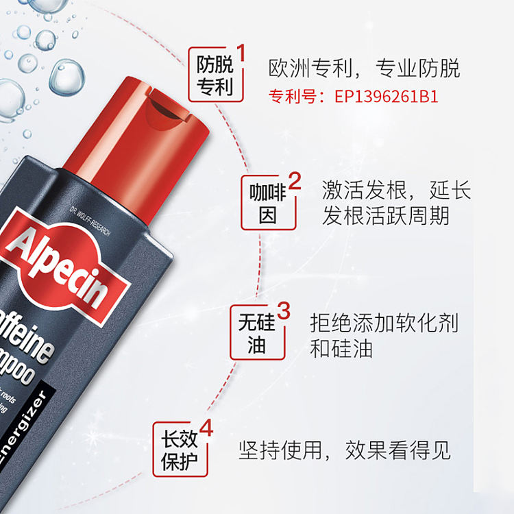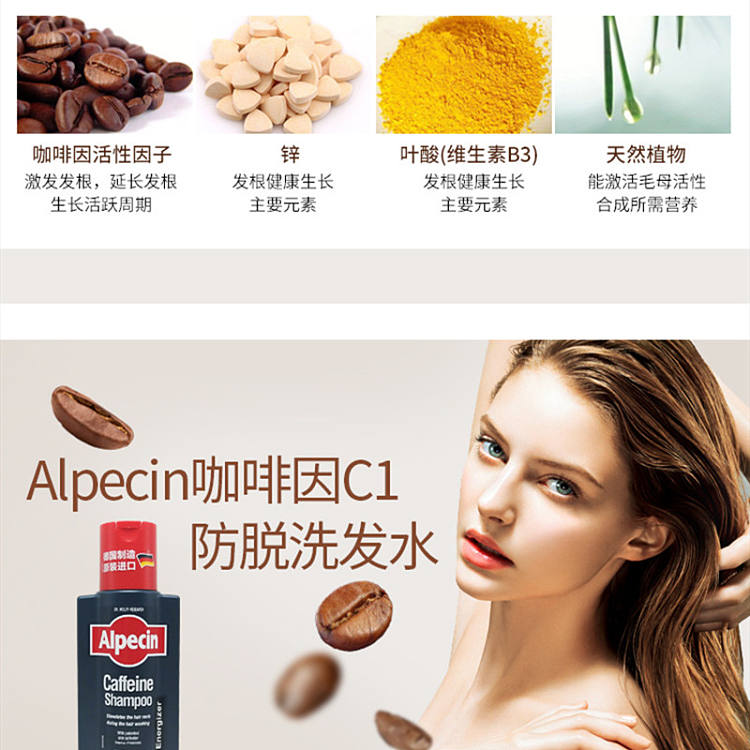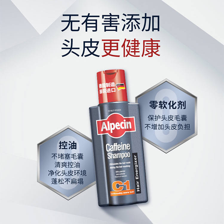 德国Alpecin C1咖啡因专利防脱发控油蓬松育发洗发水 250ML
