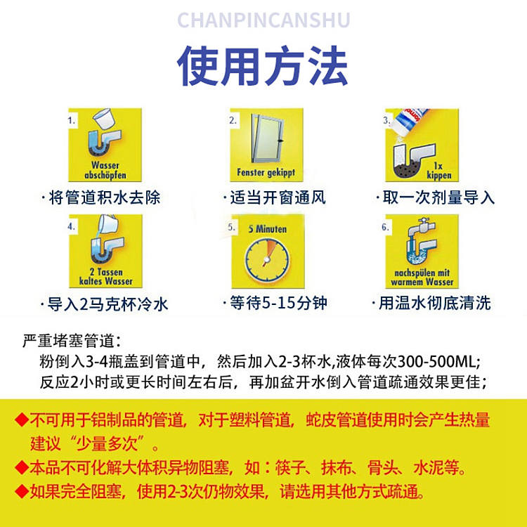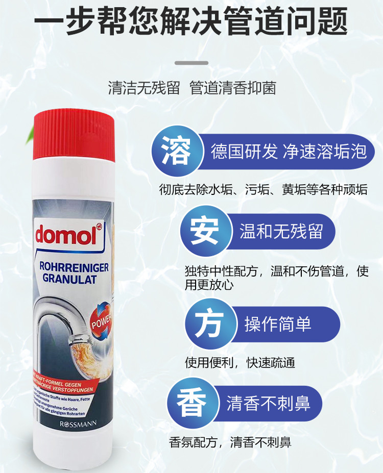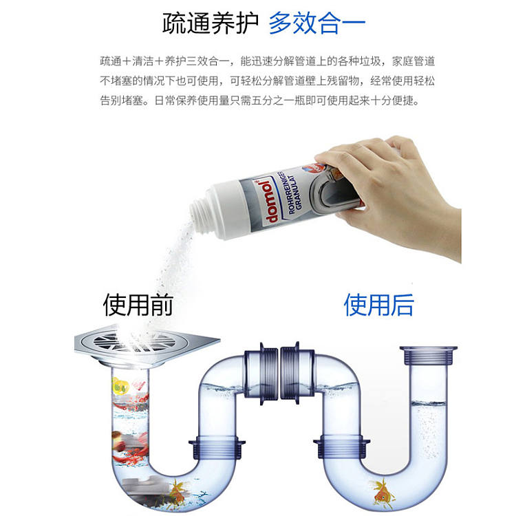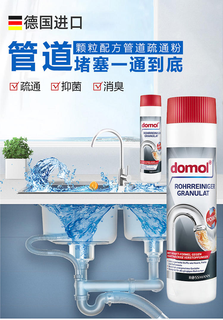 德国domol管道疏通剂强力溶解毛发下水道除臭去味防堵塞 600*2瓶