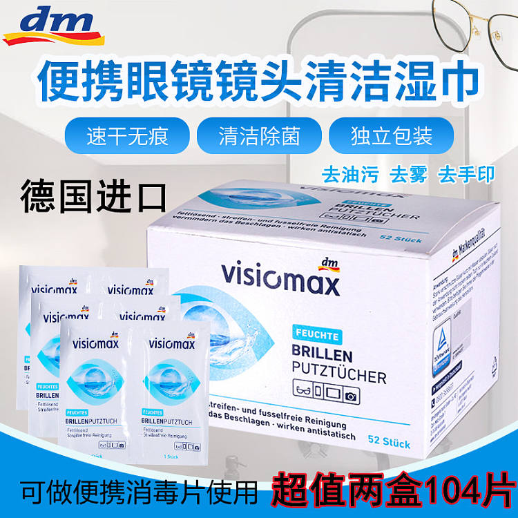 德国一次性眼睛便携眼镜布清洁湿巾镜头纸 52片*2盒