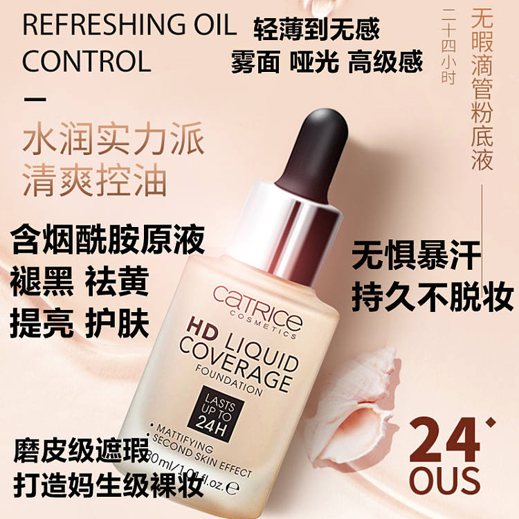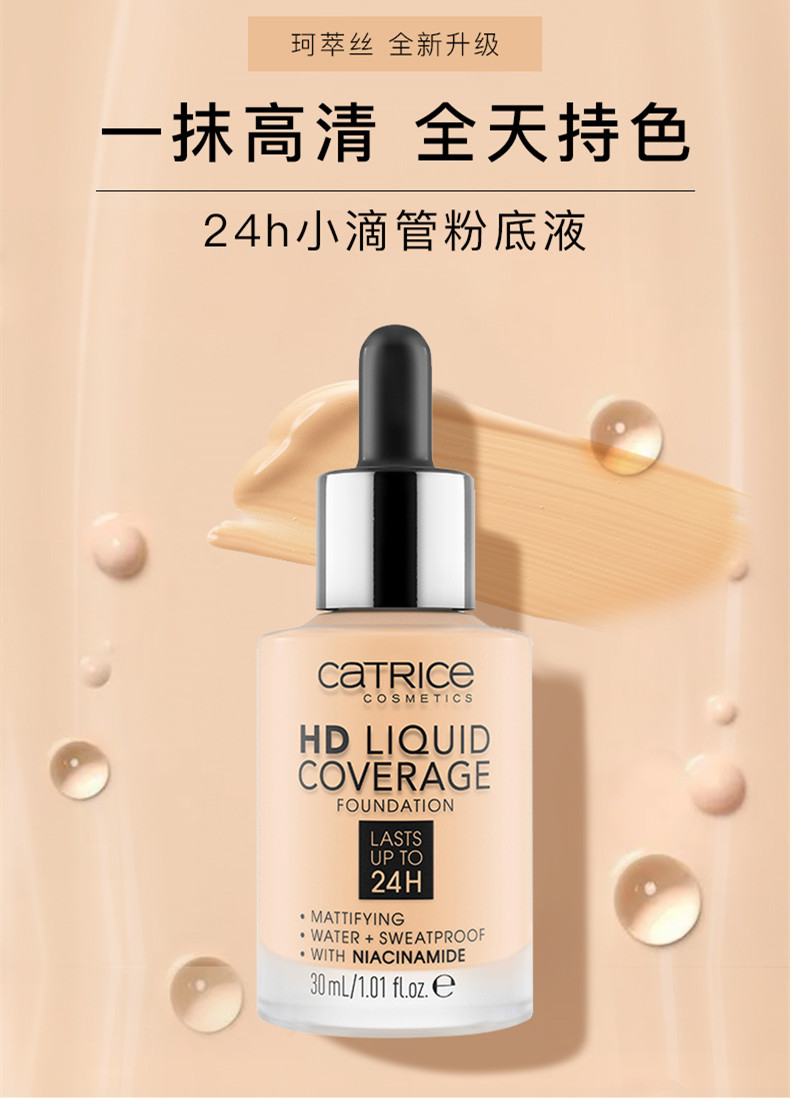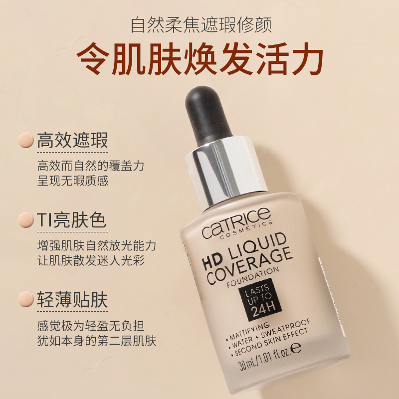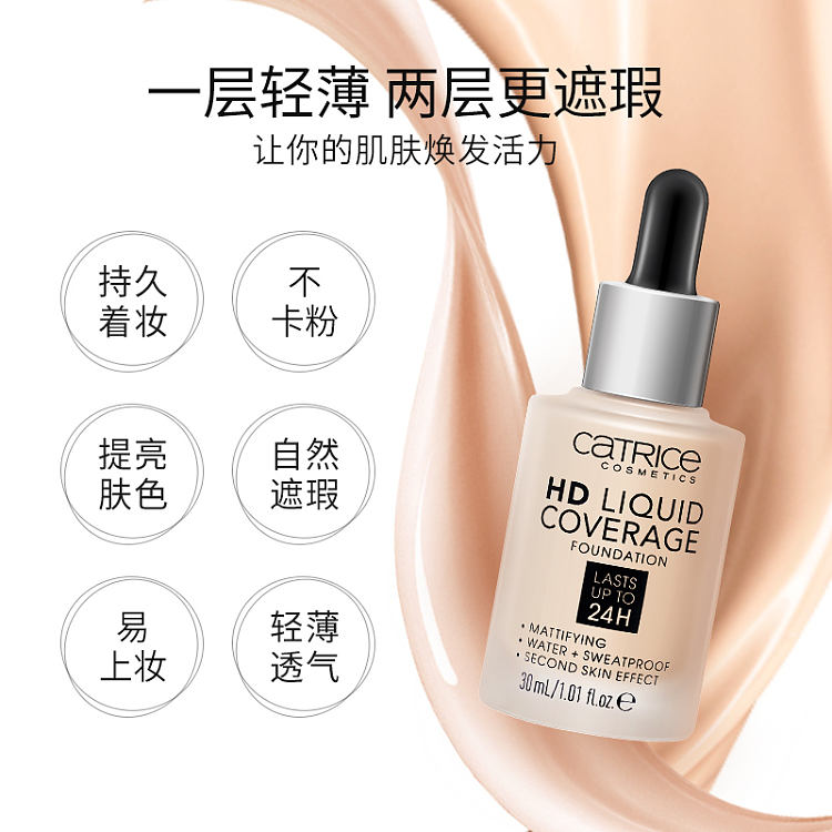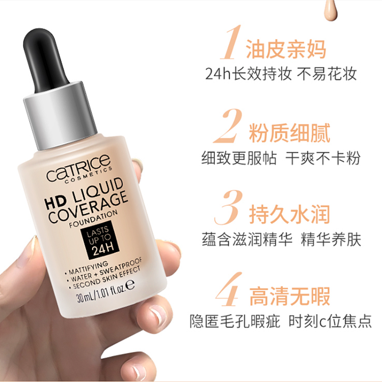 德国Catrice植物轻薄细致肌肤感滴管粉底液 自然色