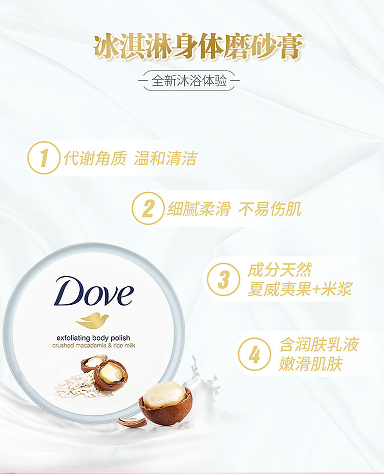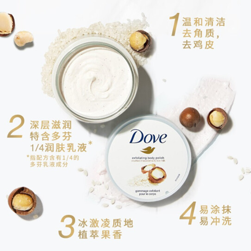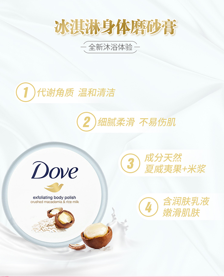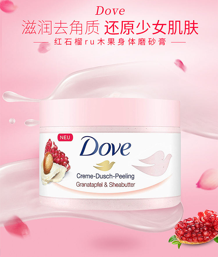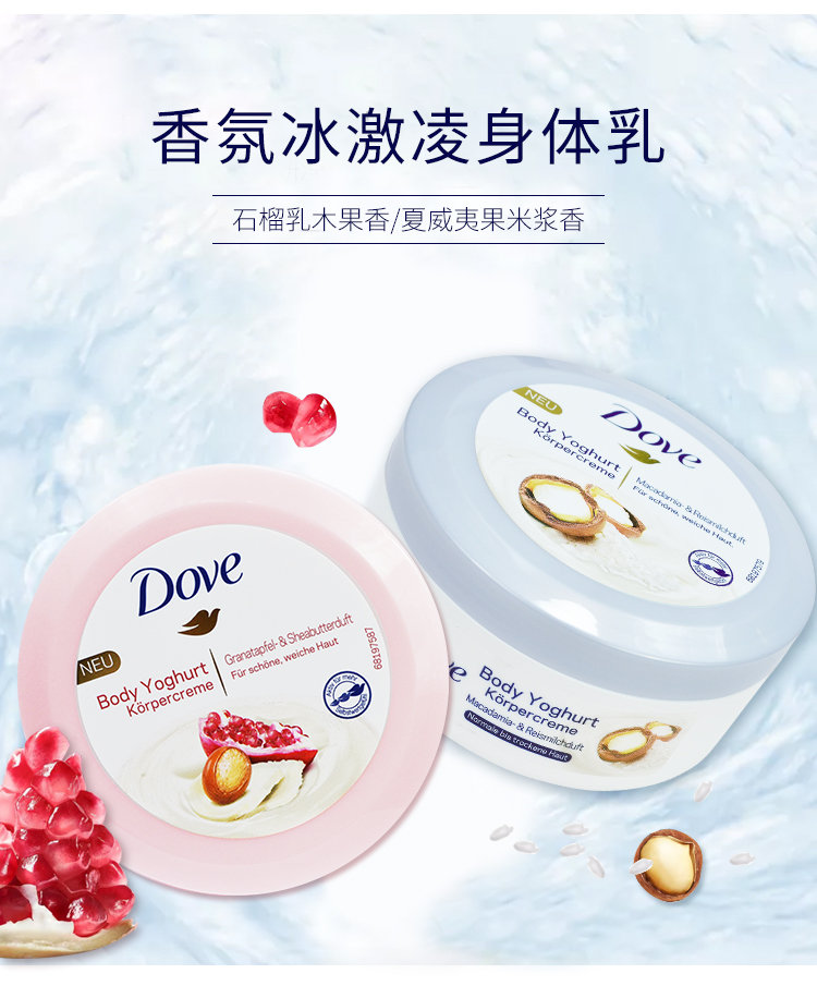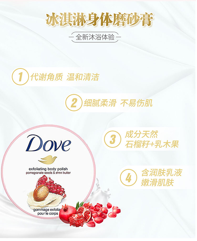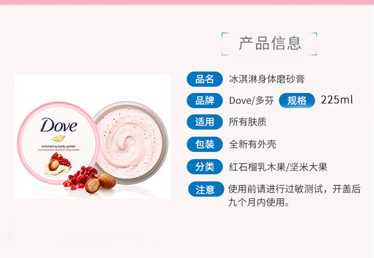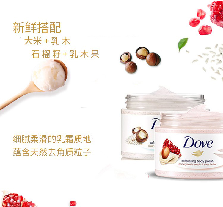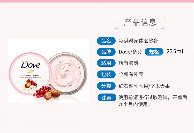 德国多芬冰激凌身体磨砂膏 石榴乳木果+坚果冰激凌 225ml*2