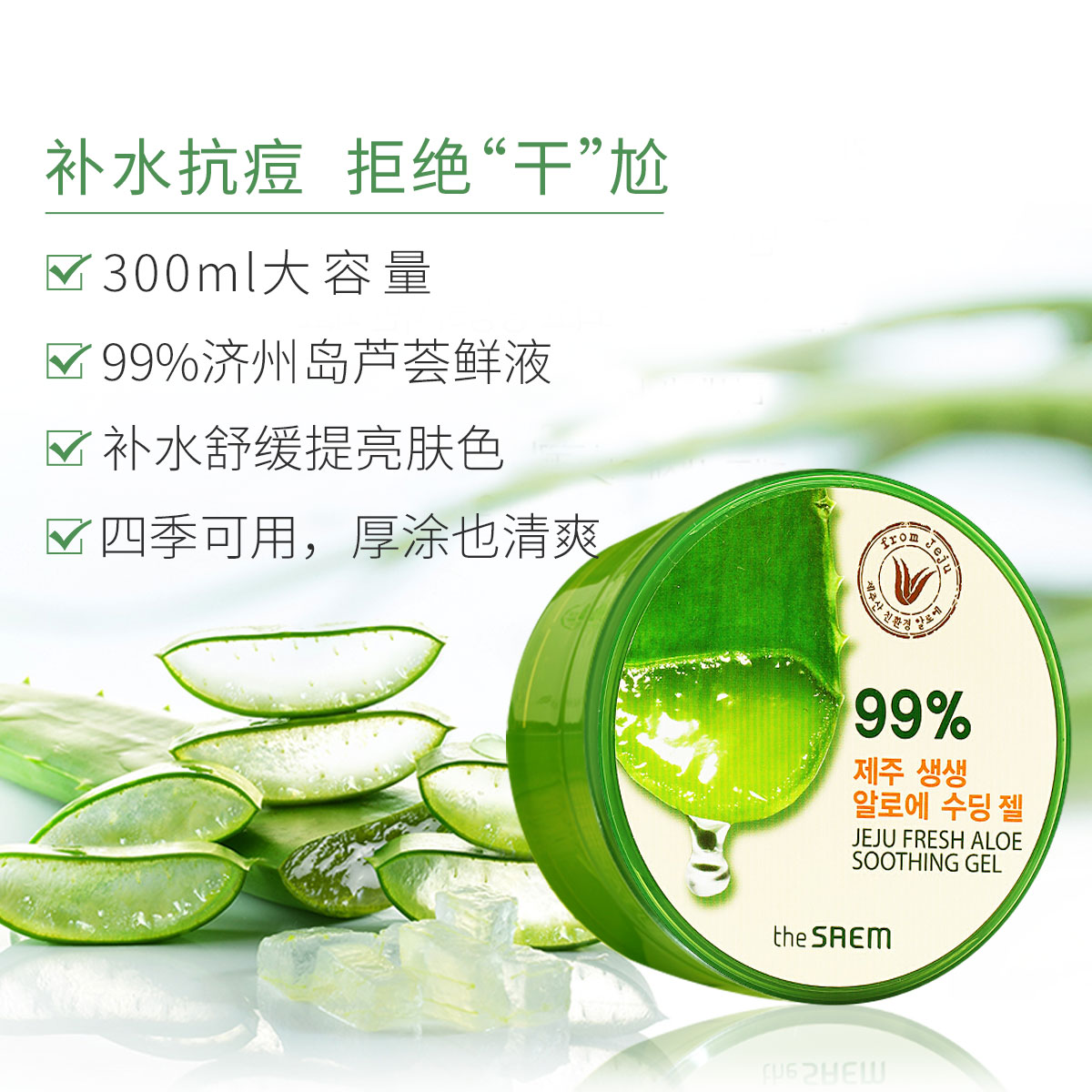 得鲜韩国济州岛99%有机芦荟胶凝胶 300ml*3