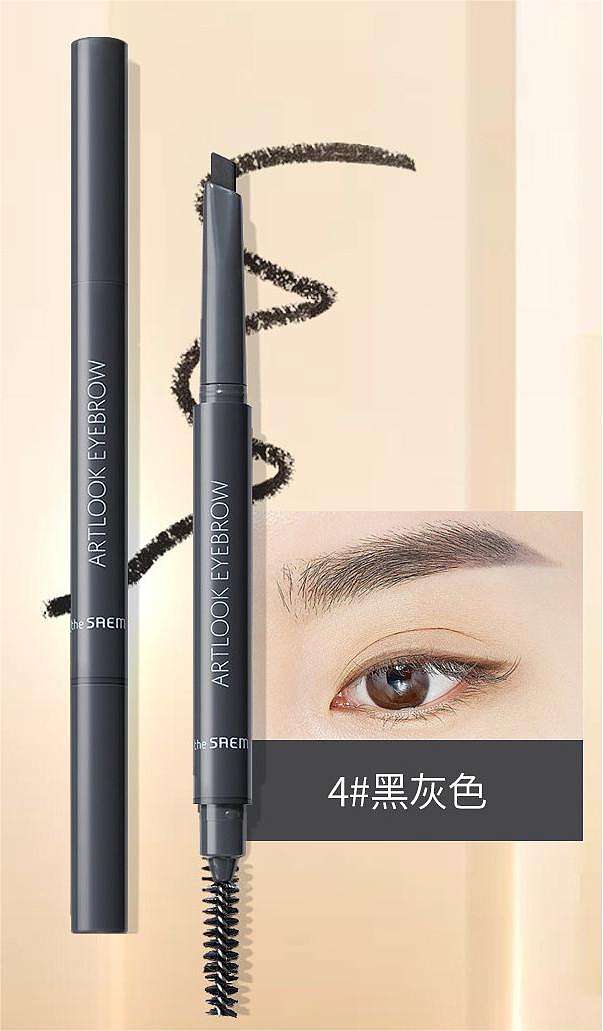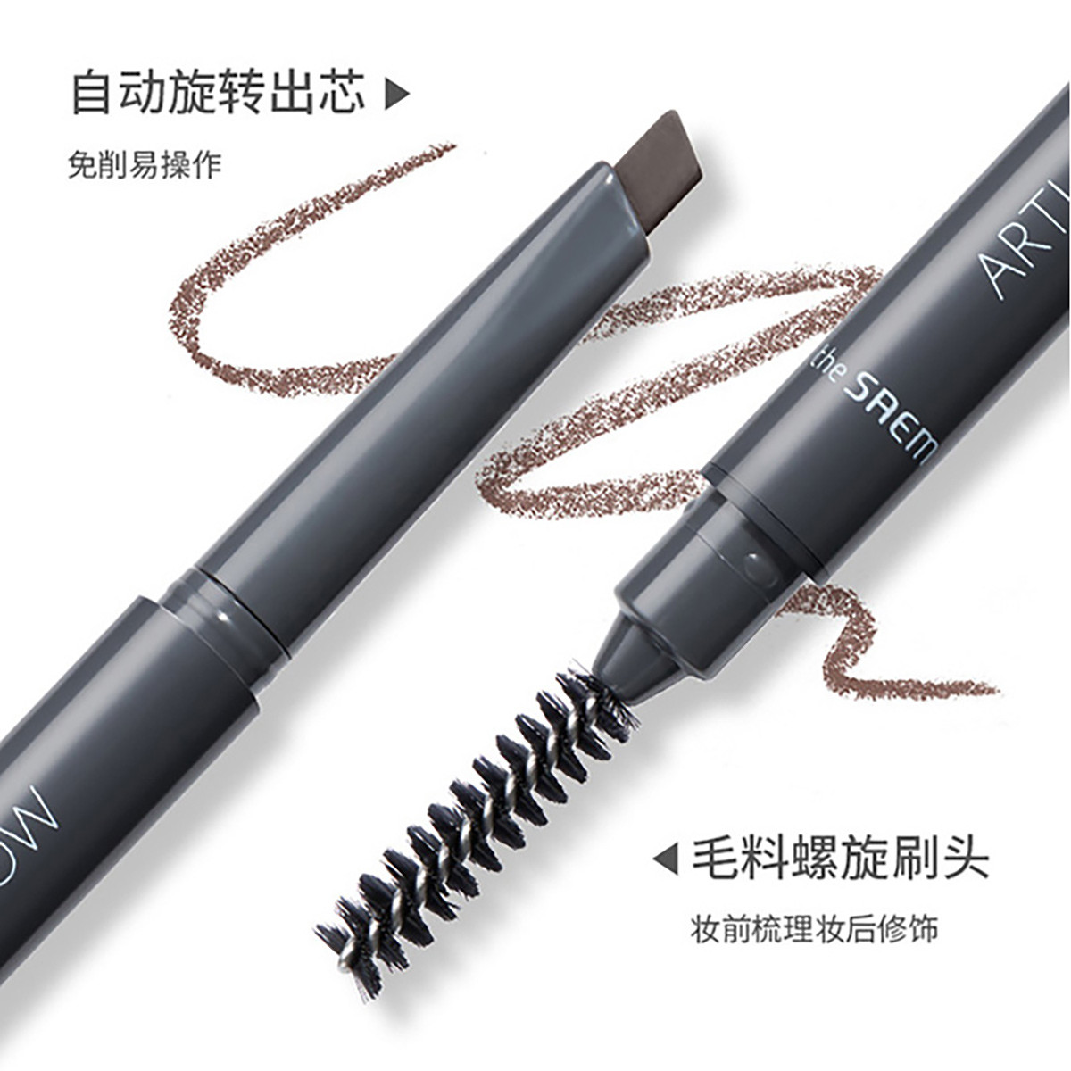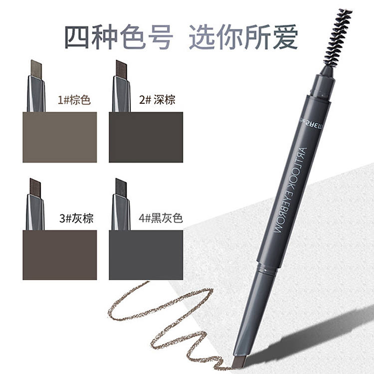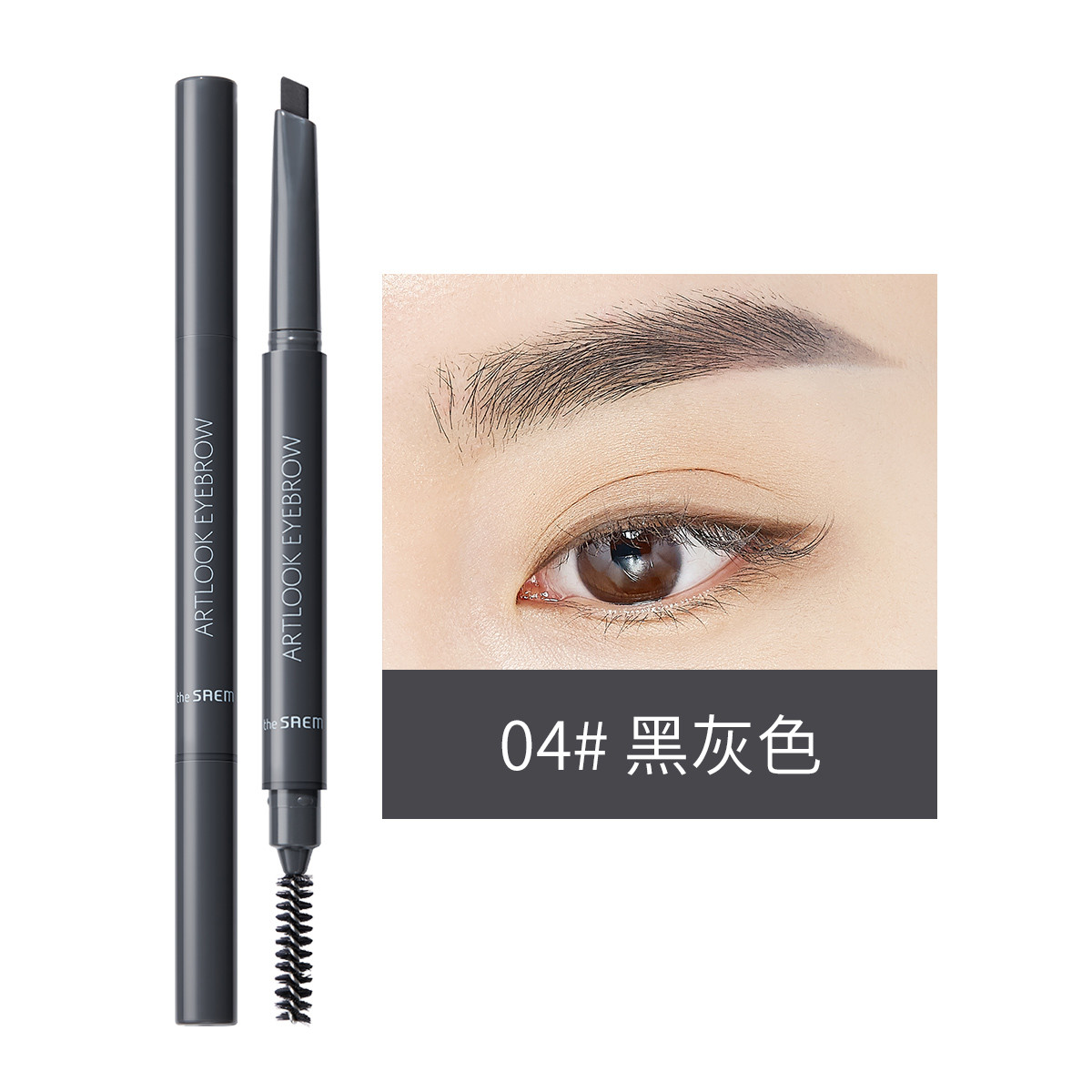 得鲜双头自动旋转眉笔+精华水15ml/自然持久不易脱色防水防汗(黑灰色)