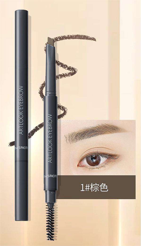 得鲜双头自动旋转眉笔+精华水15ml/自然持久不易脱色防水防汗(棕色)