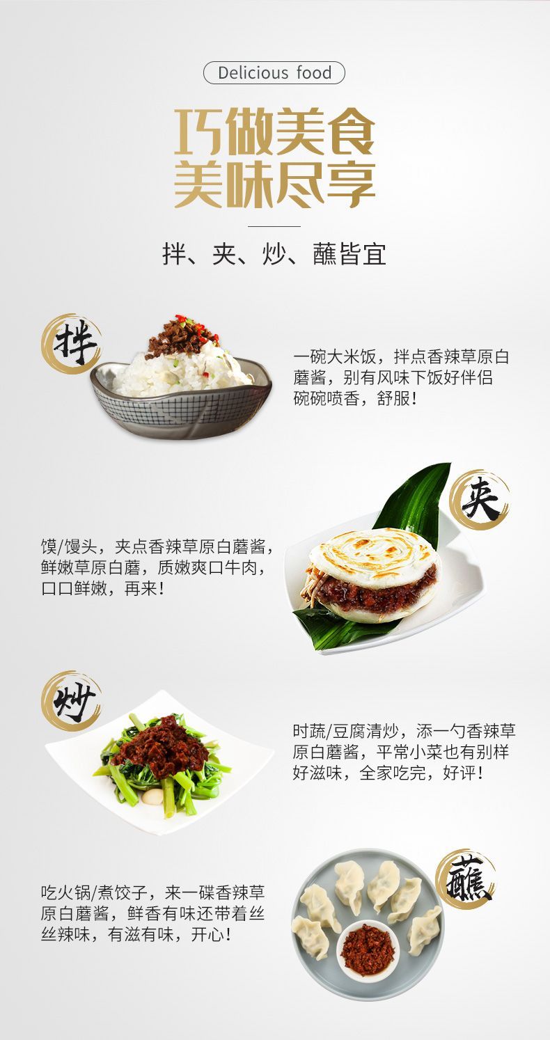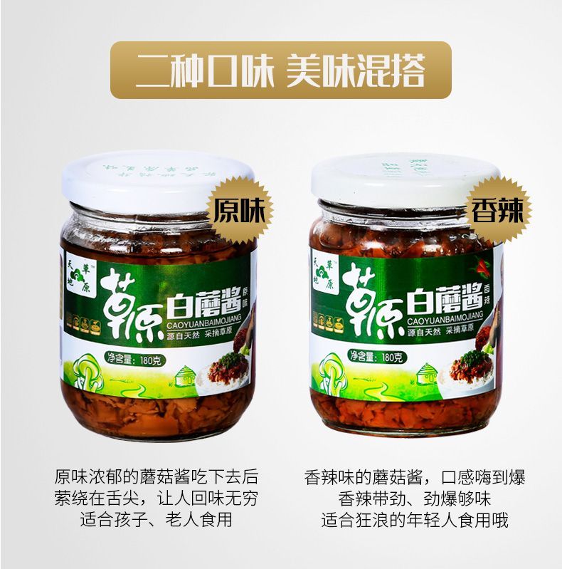 蒙古特产拌饭拌面调味白蘑酱香菇酱 原味+辣味