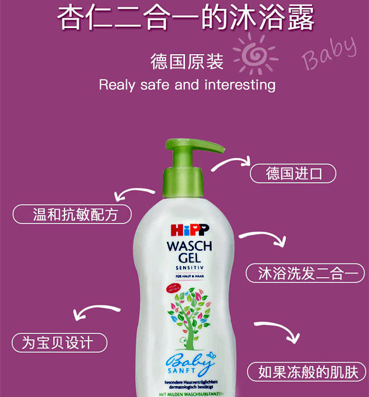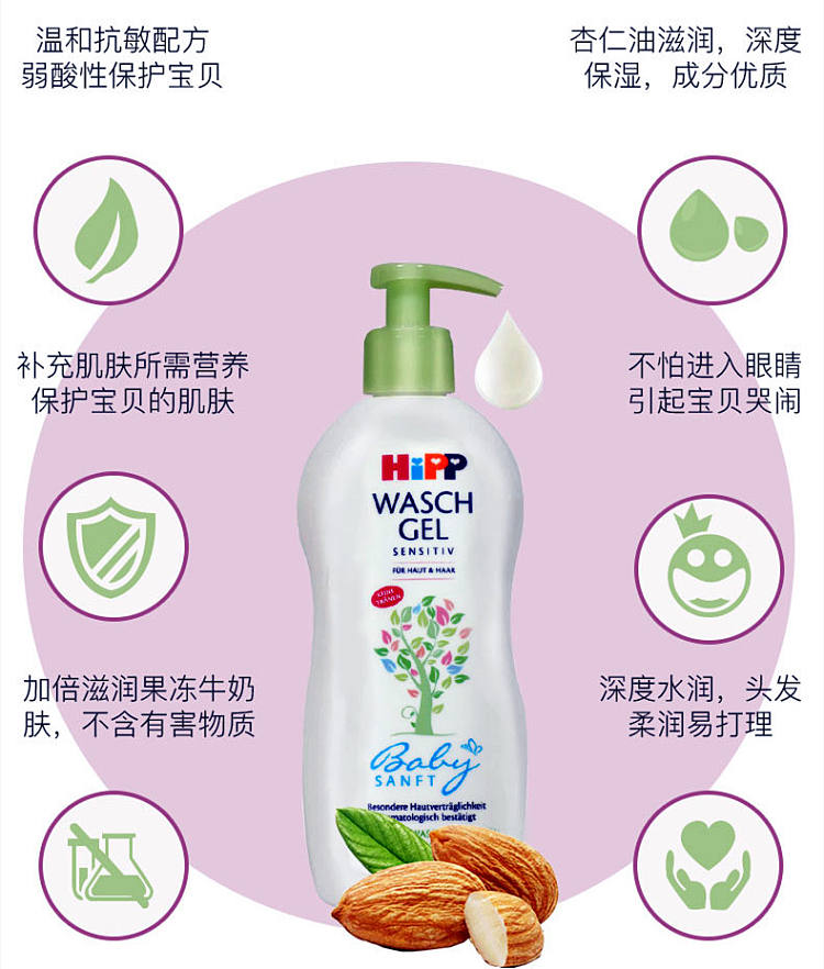 德国喜宝杏仁精油抗敏舒缓婴幼儿洗发沐浴2合1