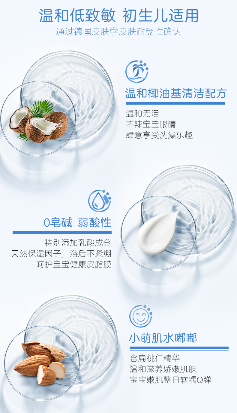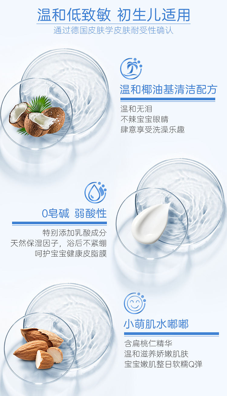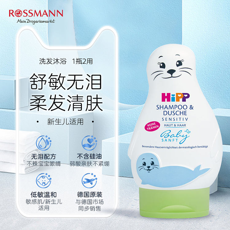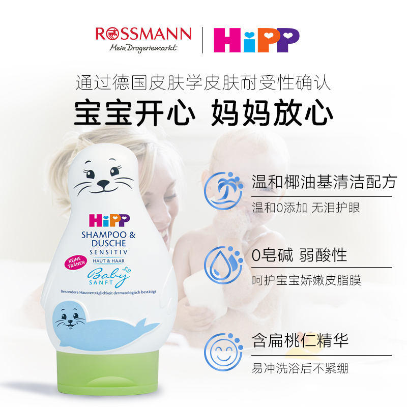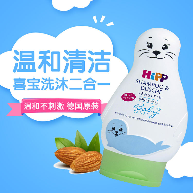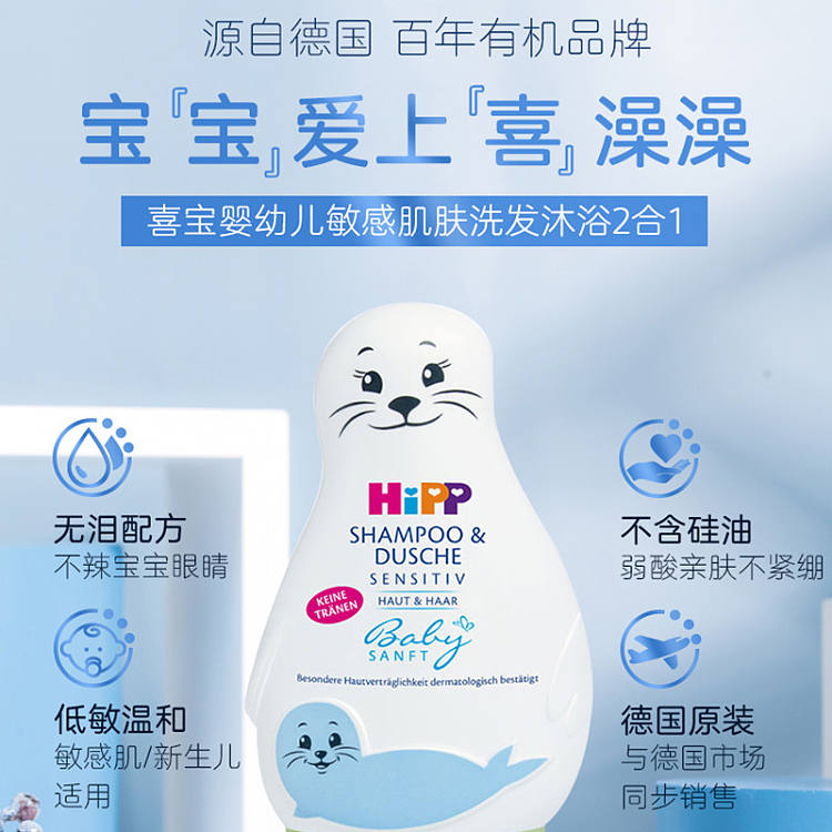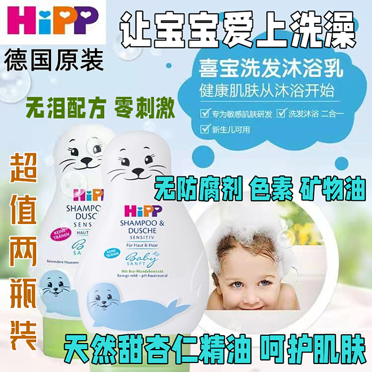 德国喜宝无皂质无石蜡洗发沐浴2合1无泪免敏 两瓶