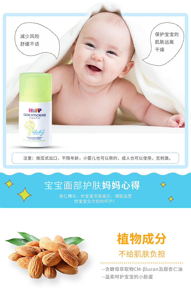 德国喜宝婴幼儿杏仁精华油不黏腻无香料面霜