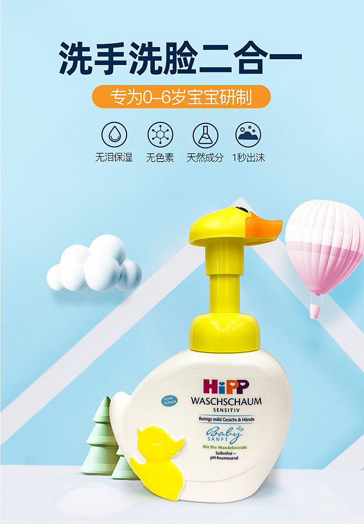 德国喜宝网红婴幼儿消毒杀菌洗手洁面泡沫 天然无泪配方 两瓶