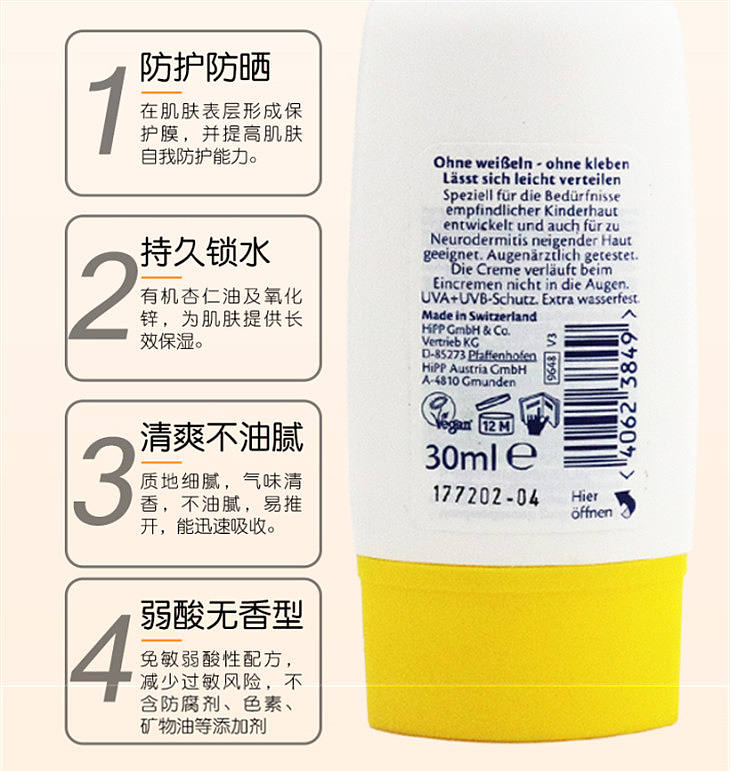 德国喜宝婴儿杏仁油儿童孕妇成人抗敏高倍防晒霜LSF50