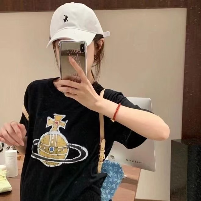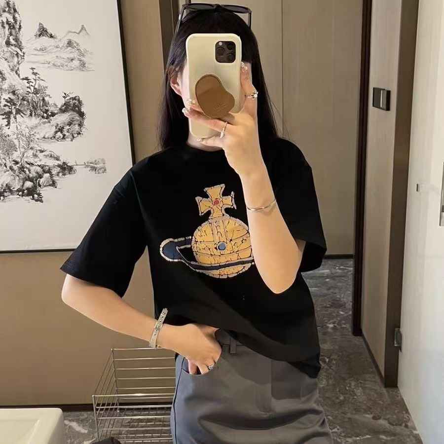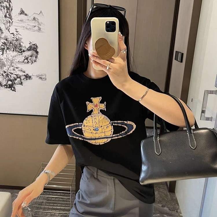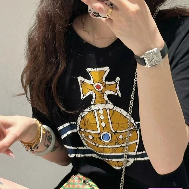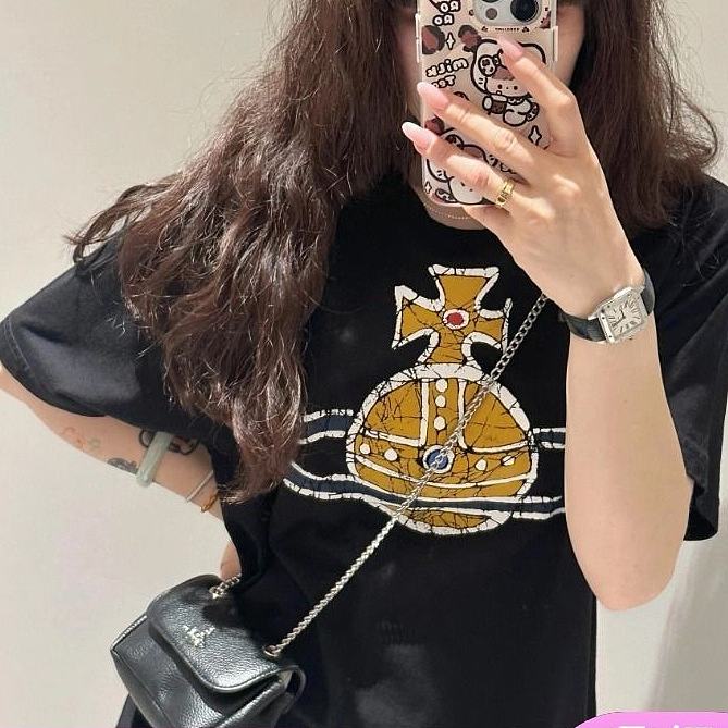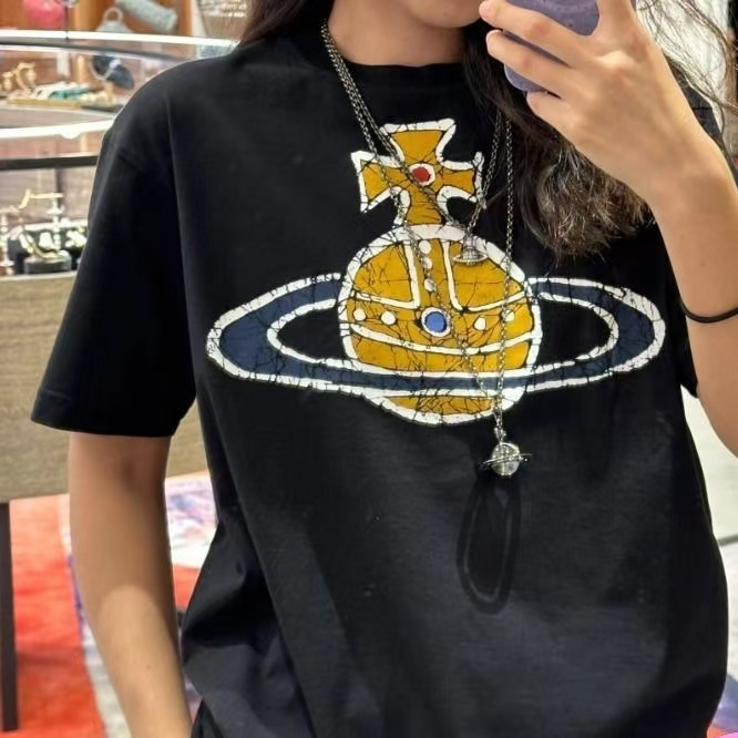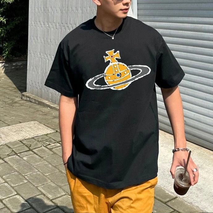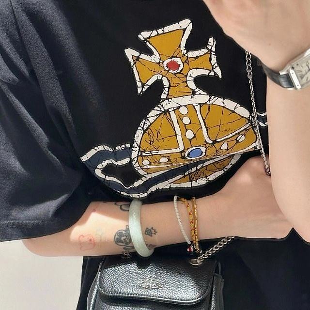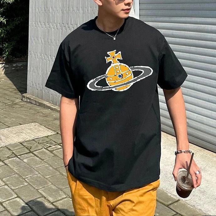 西太后新款土星印花圆领短袖T恤 男女同款 黑色