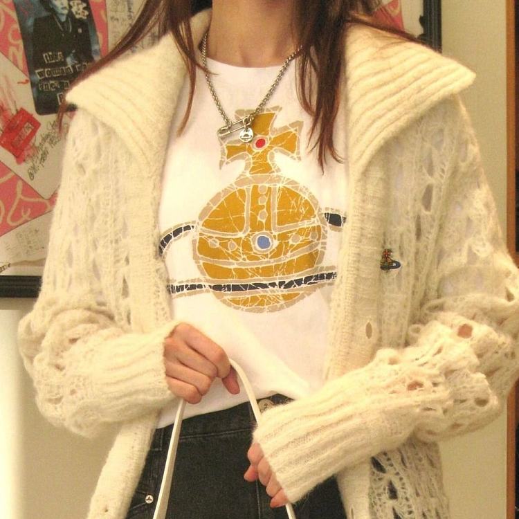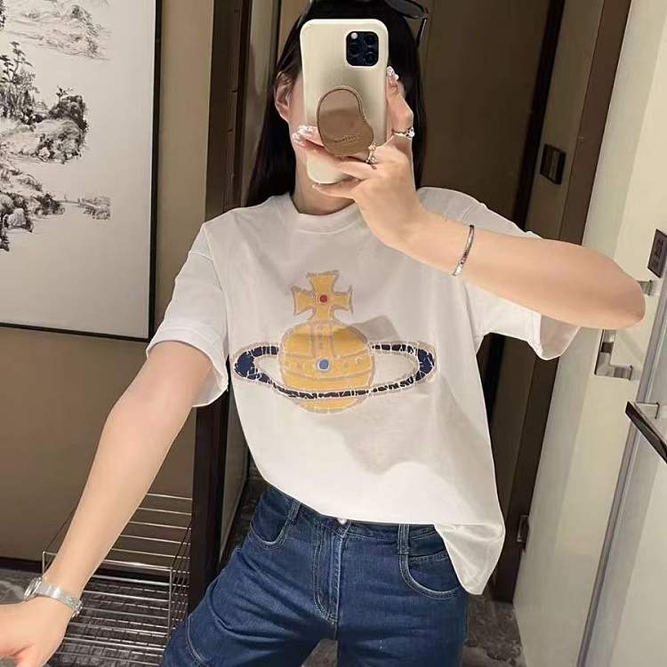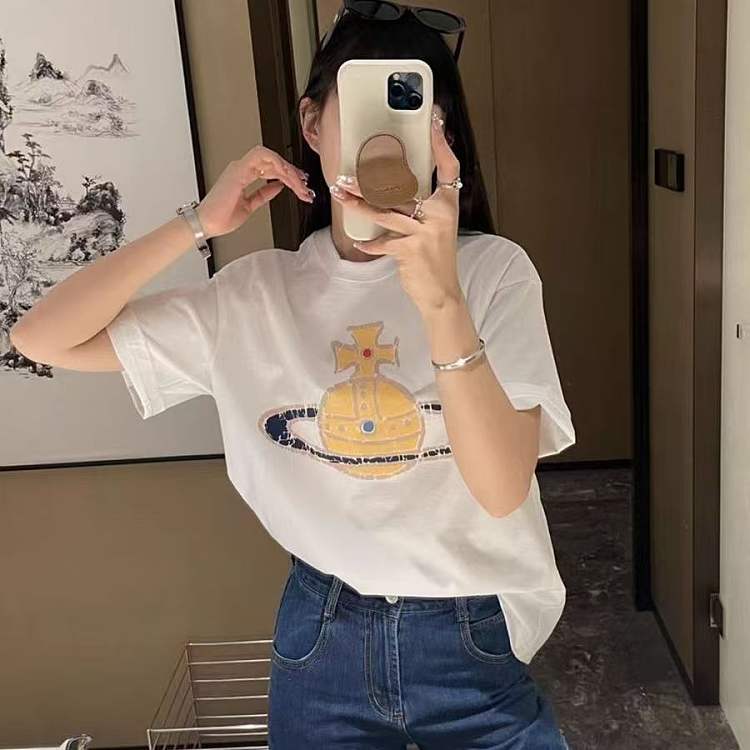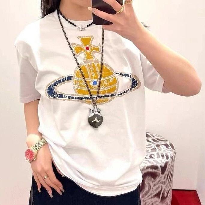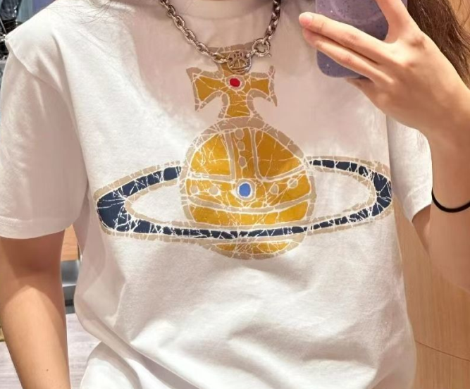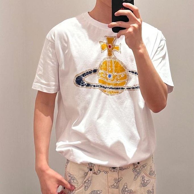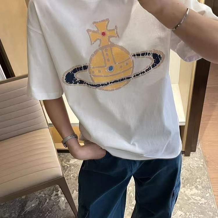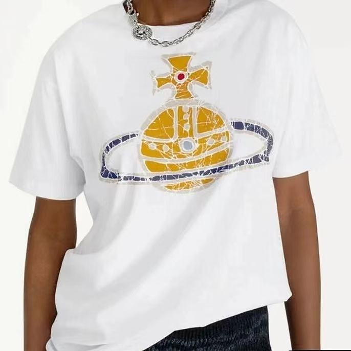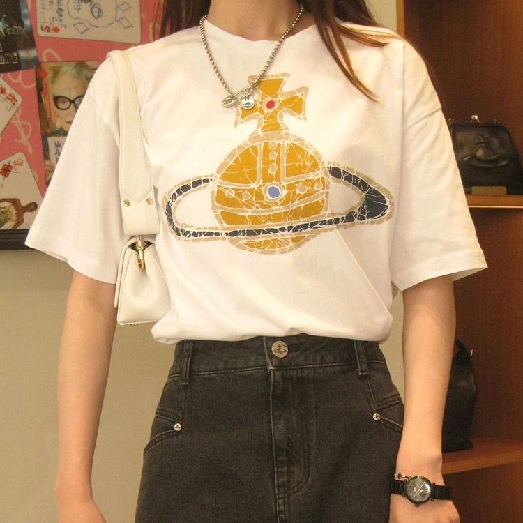 西太后新款土星印花圆领短袖T恤 男女同款 白色